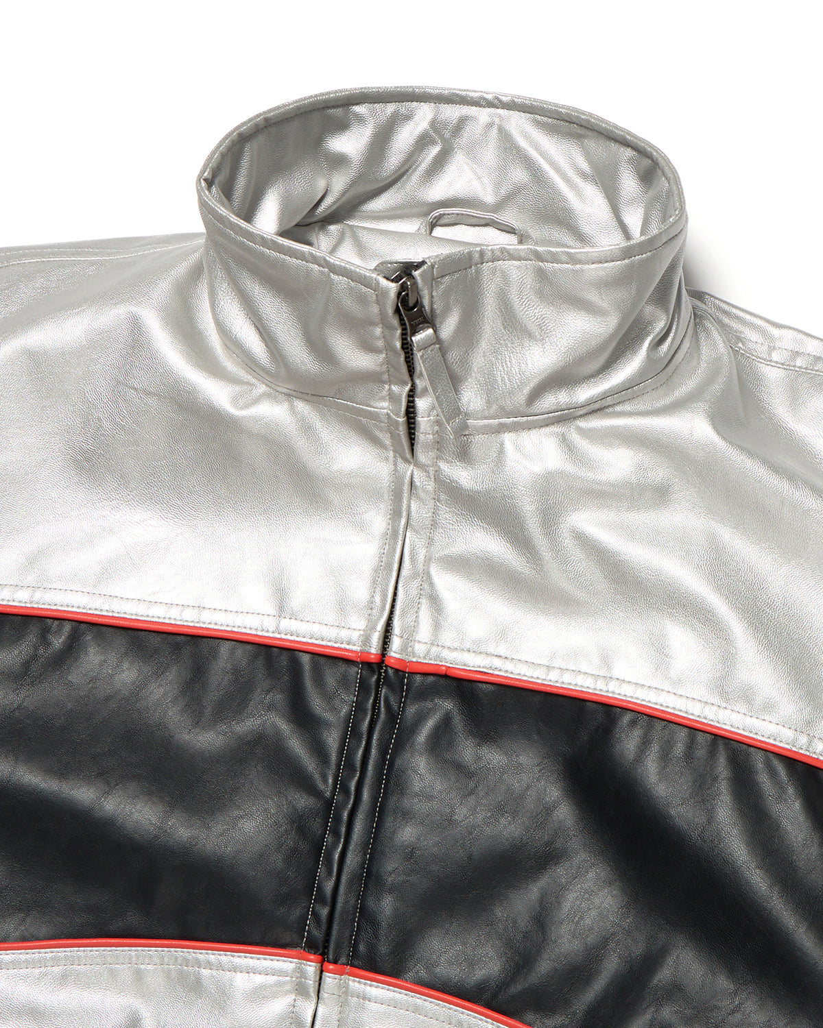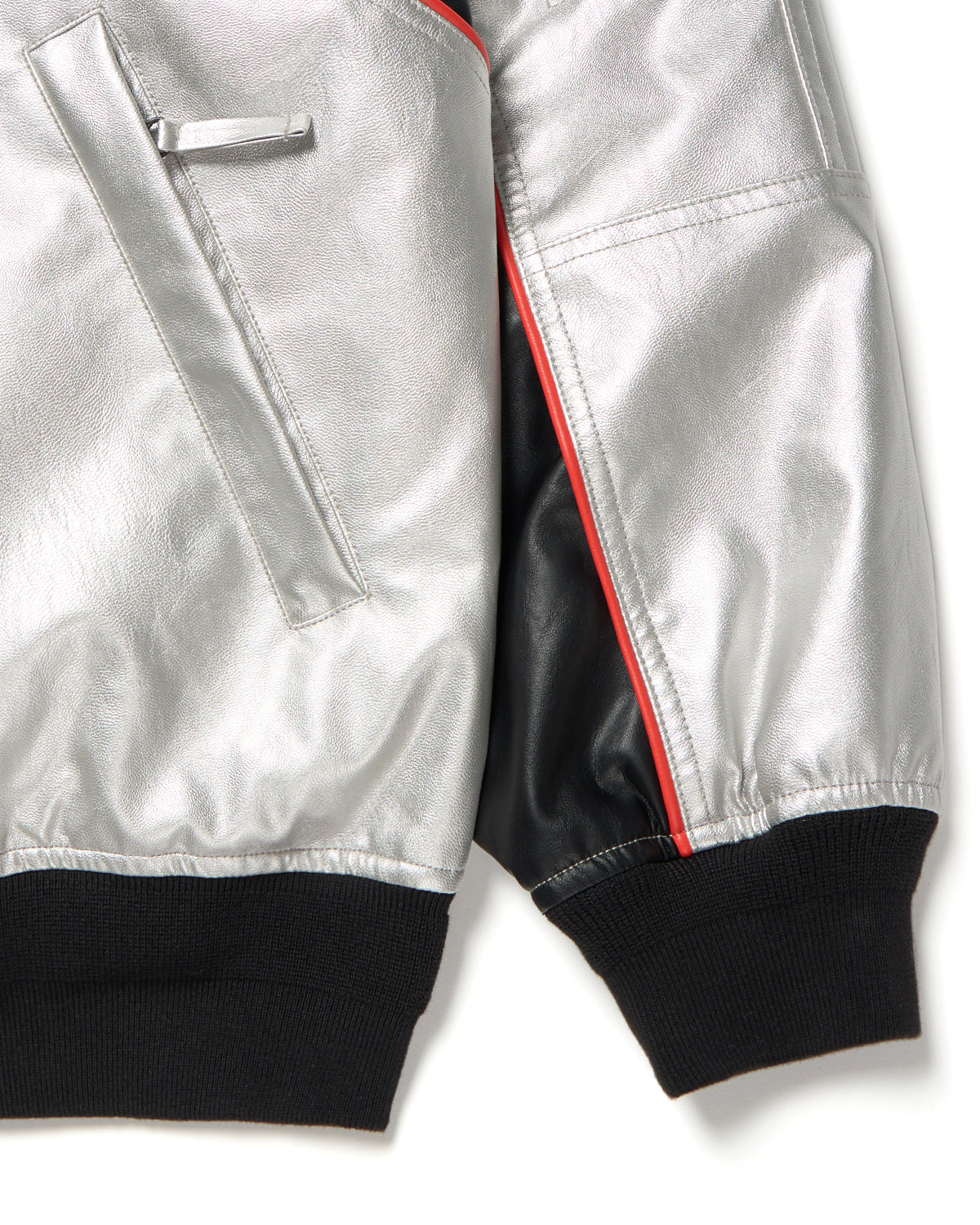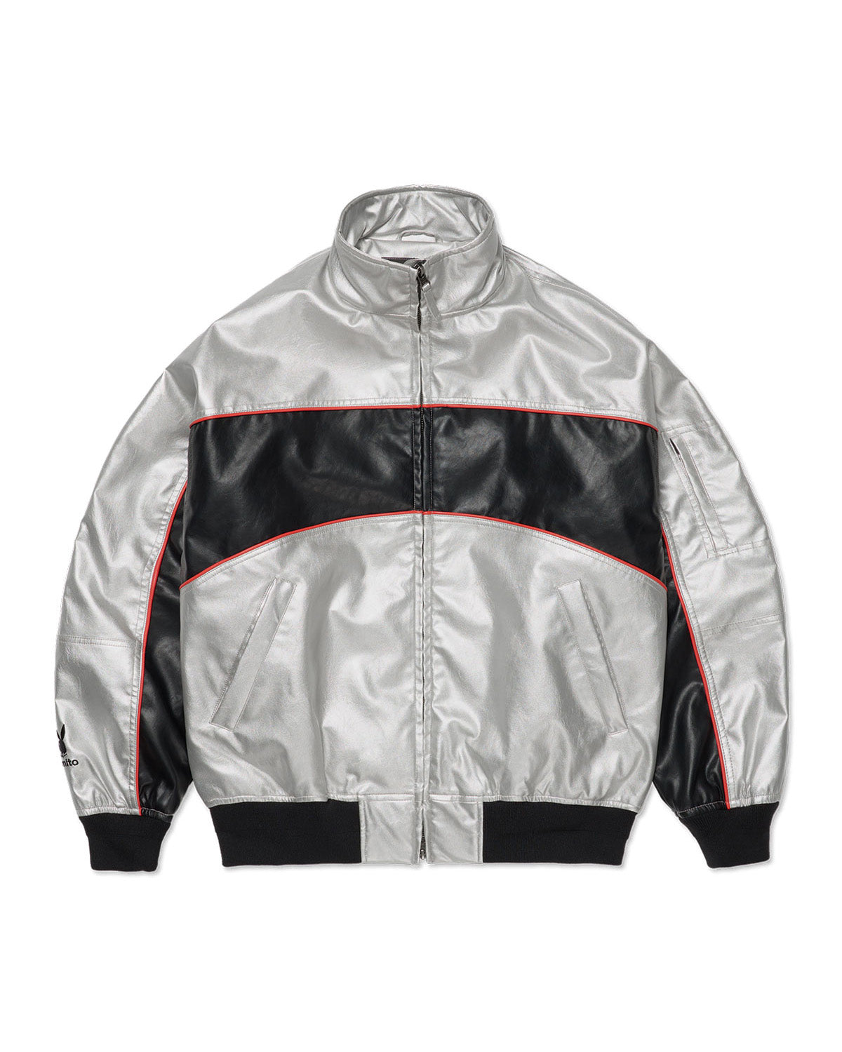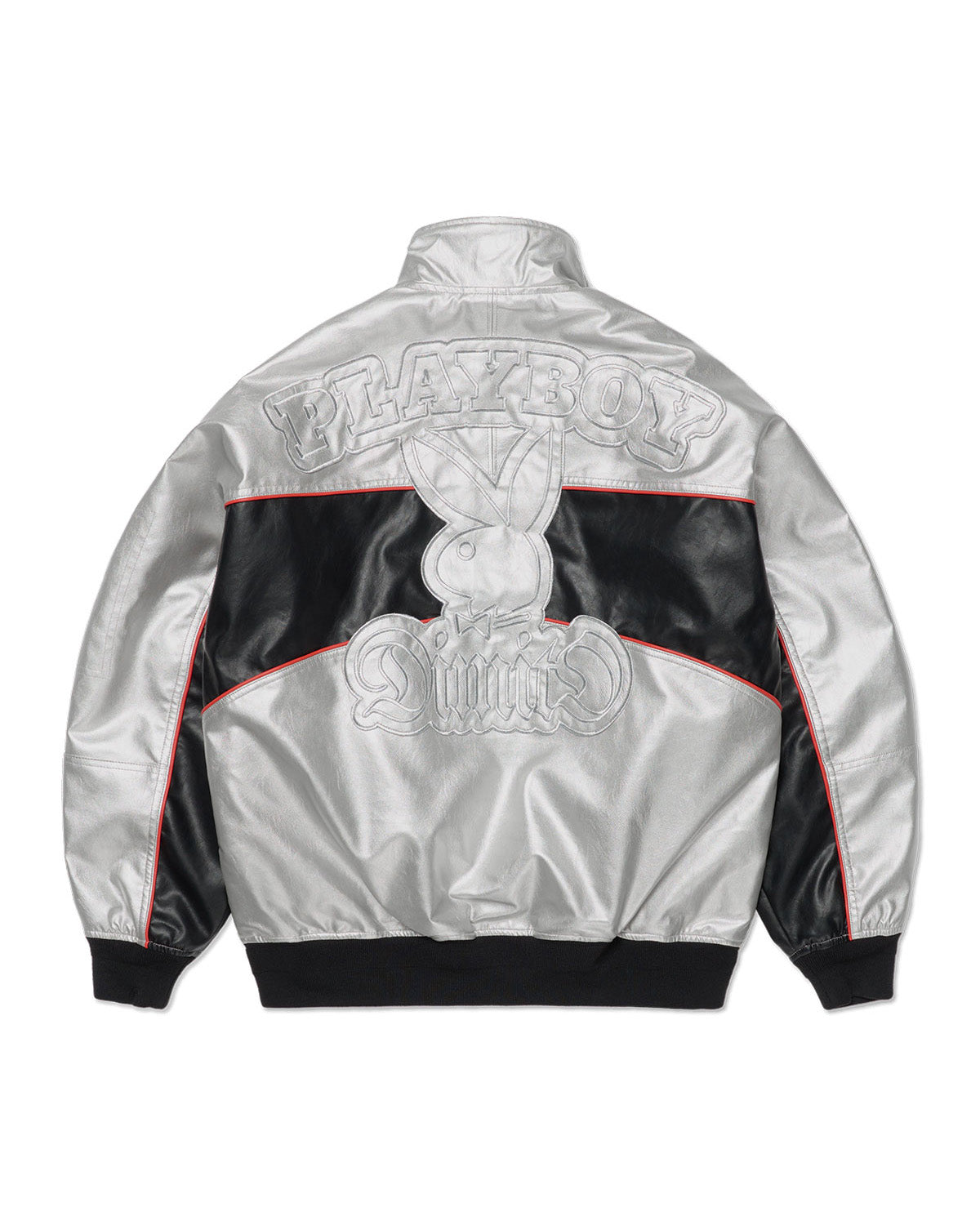 [PLAYBOY x DIMITO] BLOCK FAUX LEATHER JACKET METAL GREY