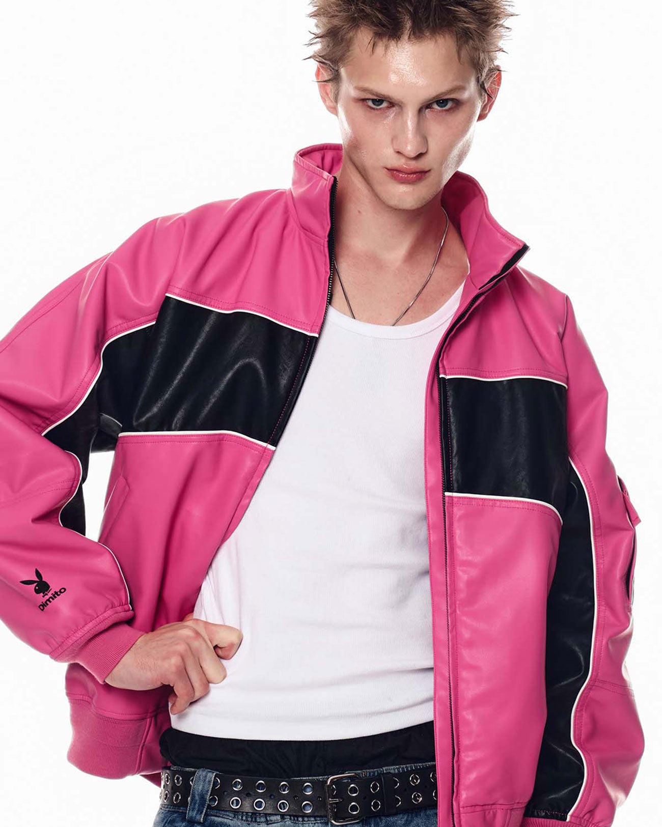 [PLAYBOY x DIMITO] BLOCK FAUX LEATHER JACKET RUDE PINK