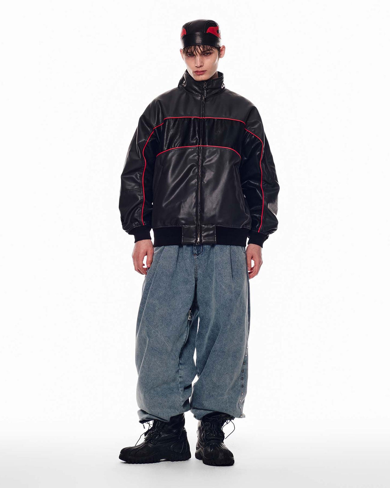[PLAYBOY x DIMITO] PIPING FAUX LEATHER JACKET BLACK