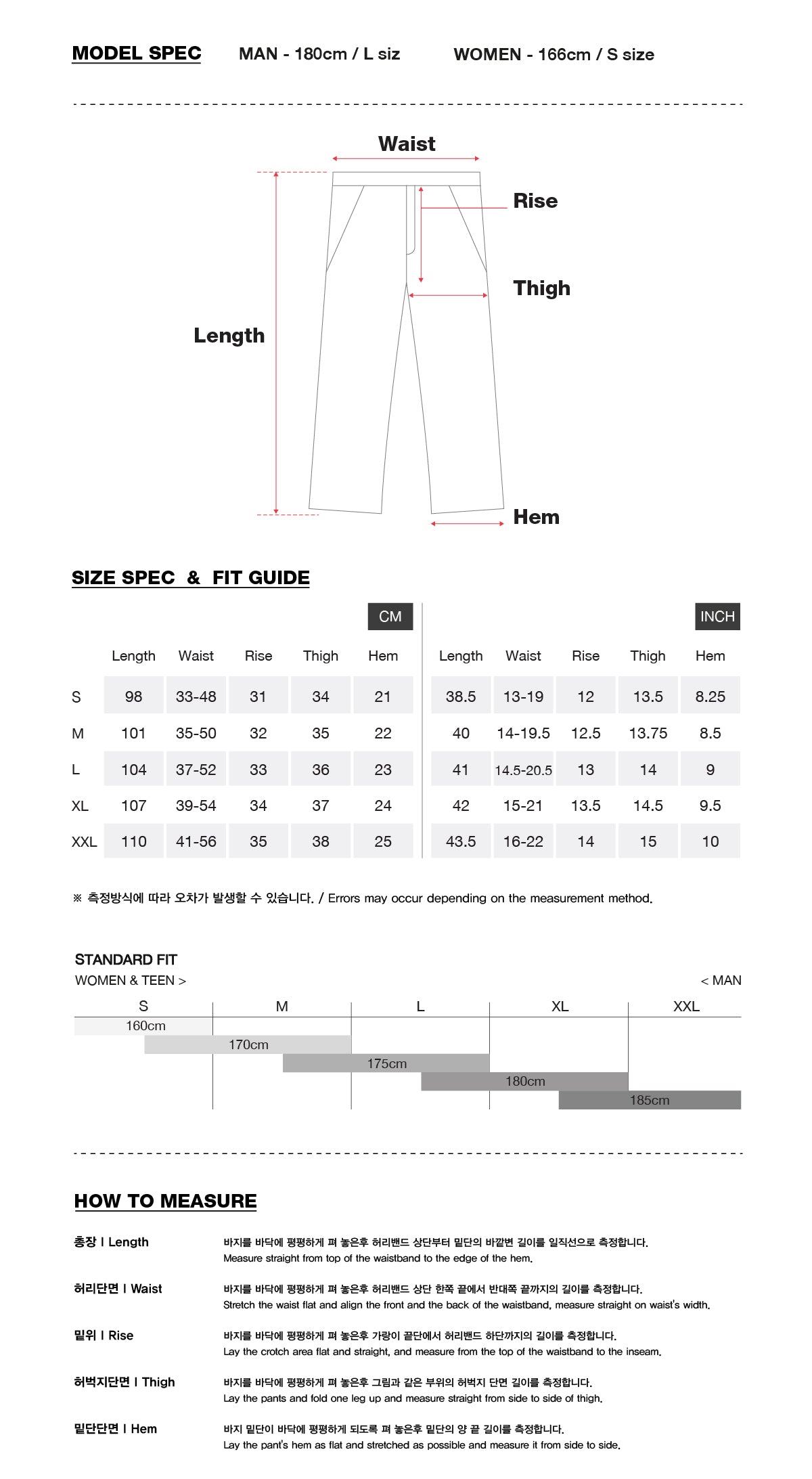 * Model spec : MEN - 180cm, L size / WOMEN - 166cm, S size