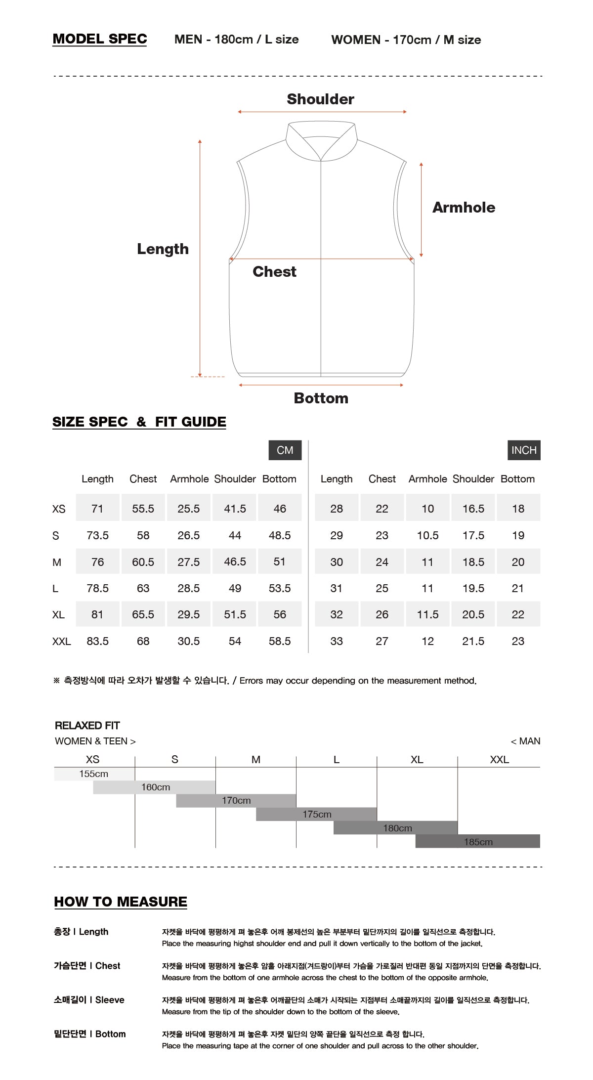 * Model spec : MEN - 180cm, L size / WOMEN - 170cm, M size