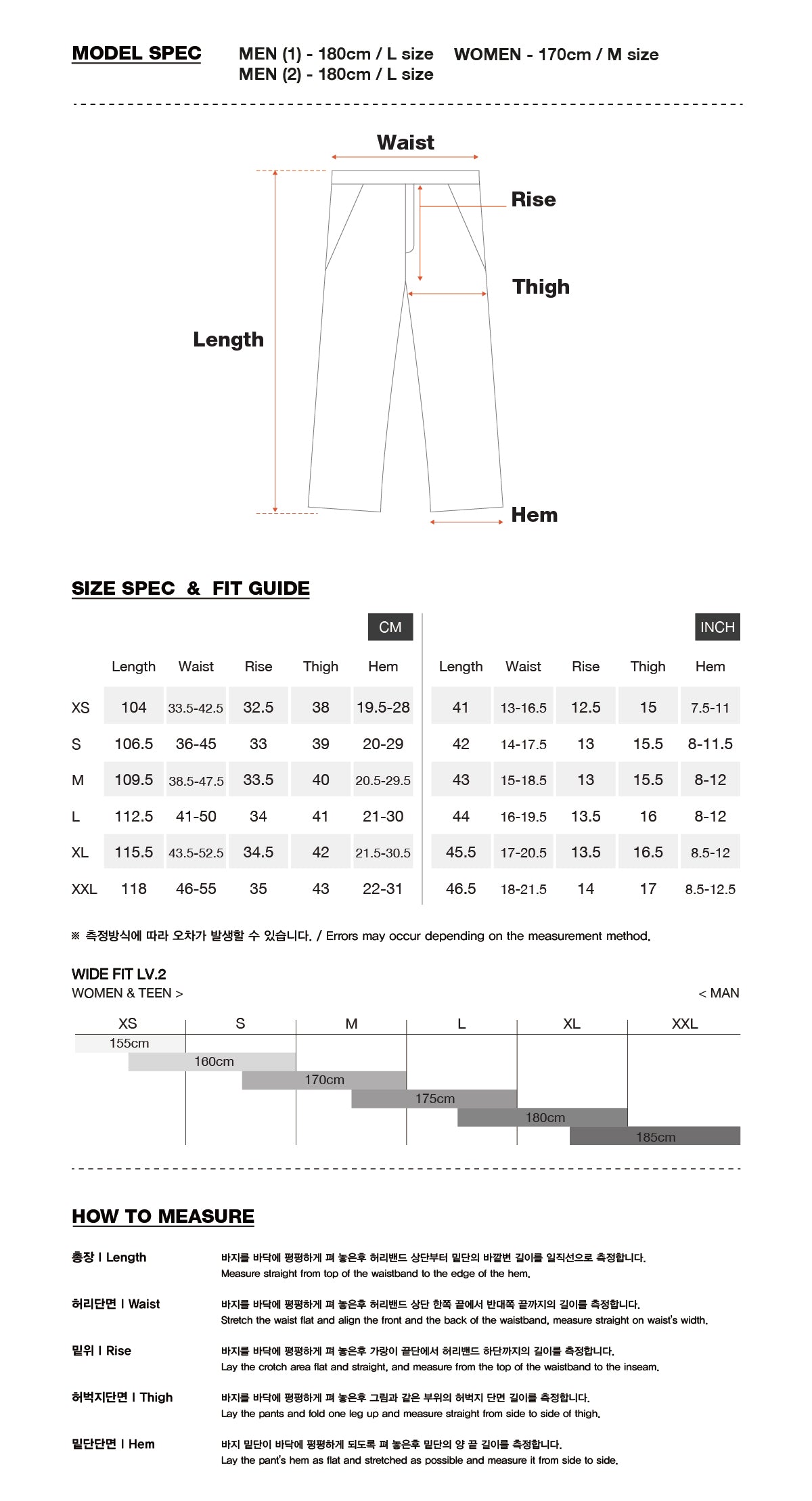 * Model spec : MEN(1) - 180cm, L size / MEN(2) - 180cm, L size / WOMEN - 170cm, L size
