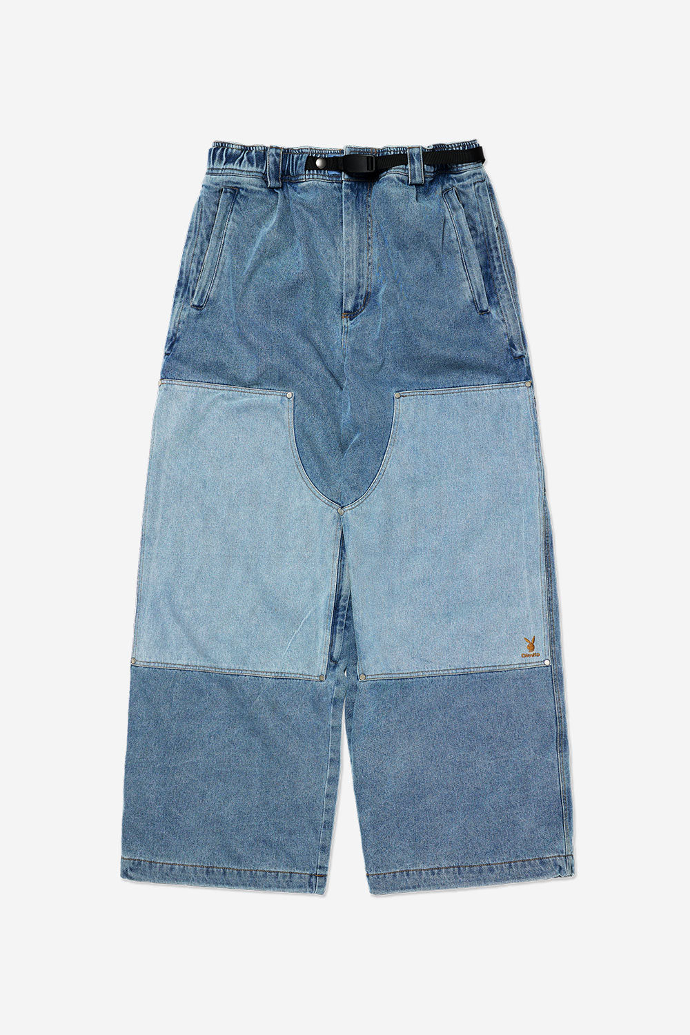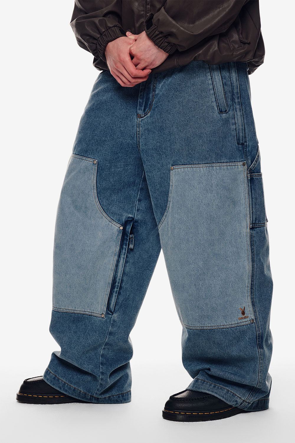 [PLAYBOY x DIMITO] DOUBLE KNEE DENIM PANTS (WIDE FIT LV.2) WASHED BLUE