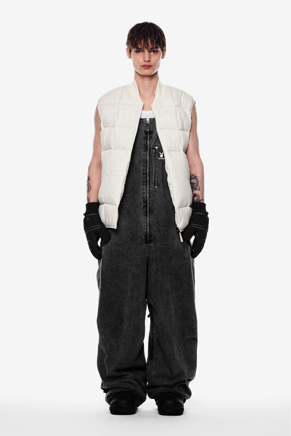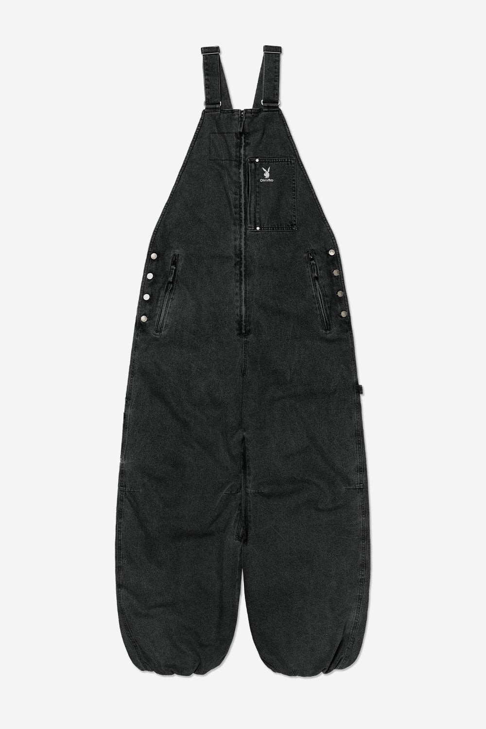 [PLAYBOY x DIMITO] STITCHED TRUCKER BIB DENIM PANTS (WIDE FIT LV.1) WASHED BLACK