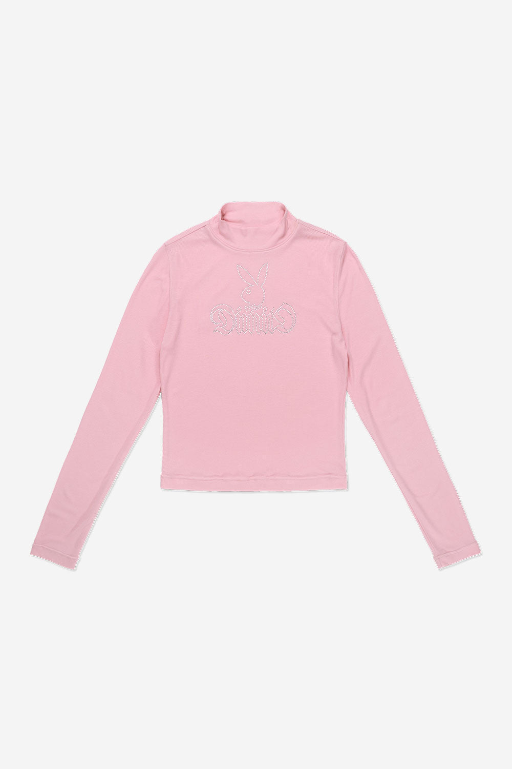 [PLAYBOY x DIMITO] BUNNY CHARMSTONE NECK TOP BABY PINK