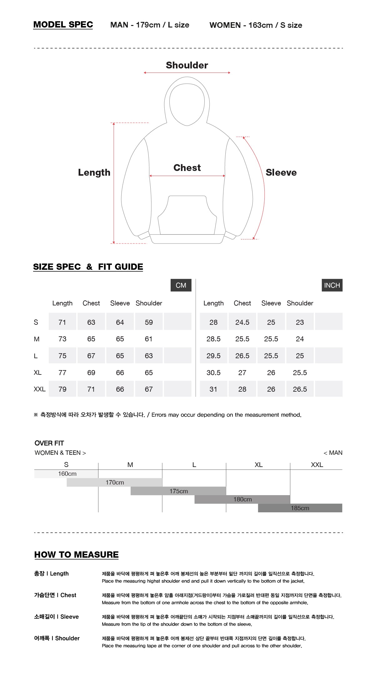 * Model spec : MEN - 179cm, L size / WOMEN - 163cm, S size