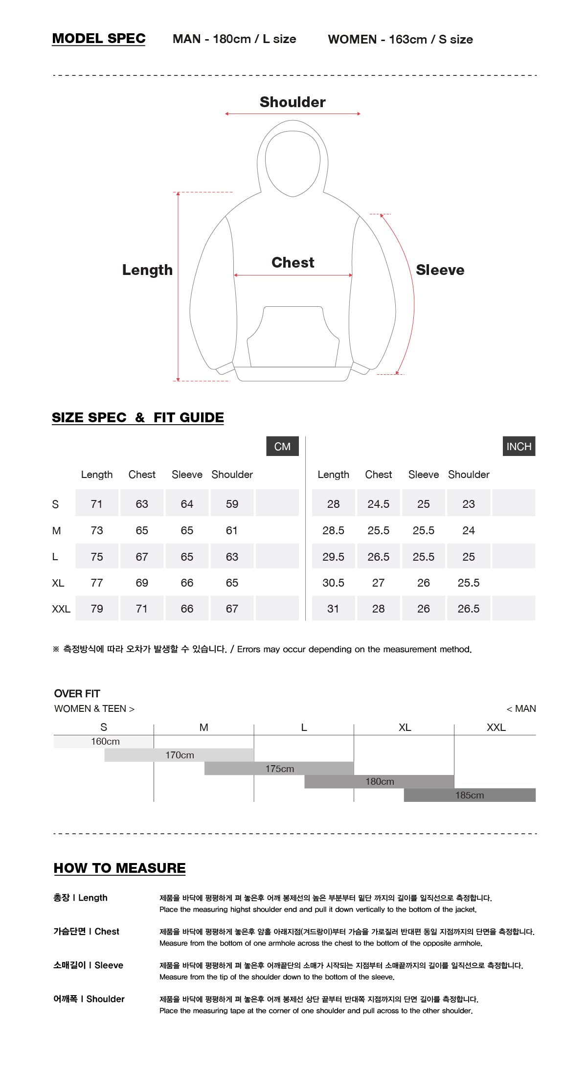 * Model spec : MEN - 180cm, L size / WOMEN - 163cm, S size
