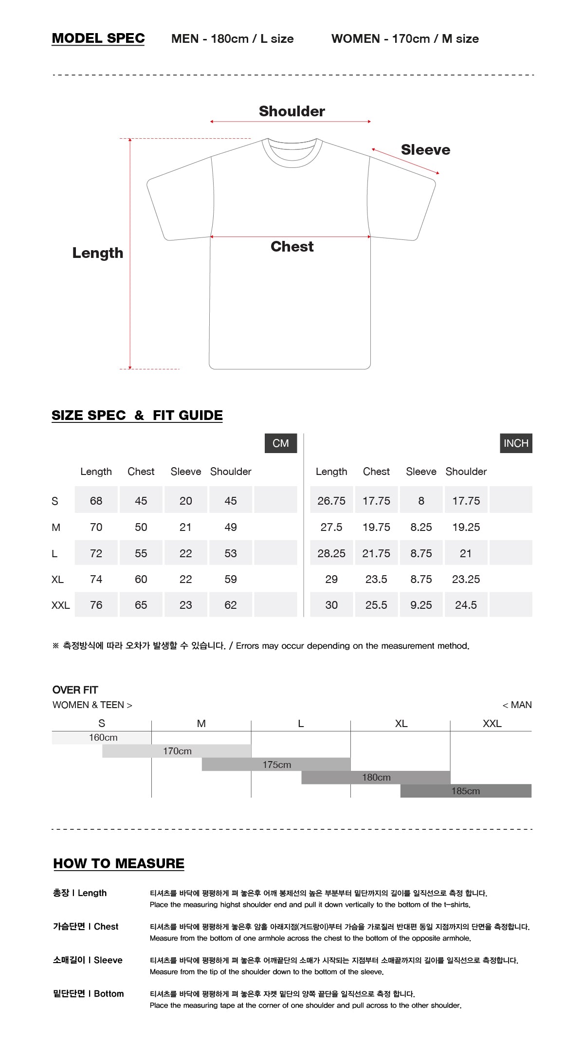 * Model spec : MEN - 180cm, L size / WOMEN - 170cm, M size