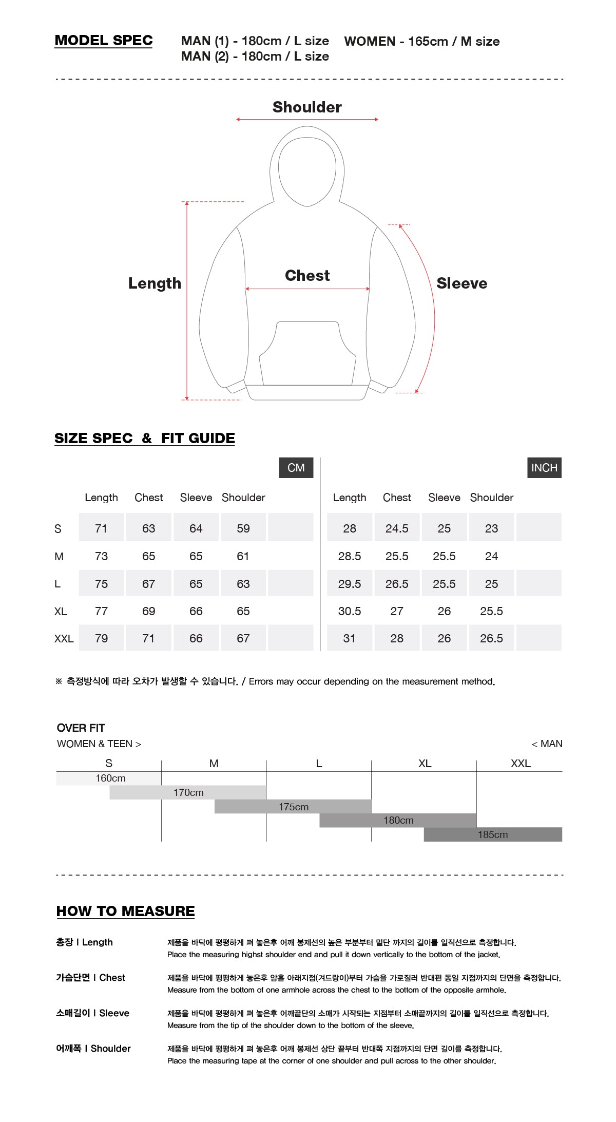 * Model spec : MEN(1) - 180cm, L size / MEN(2) - 180cm, L size / WOMEN - 165cm, M size