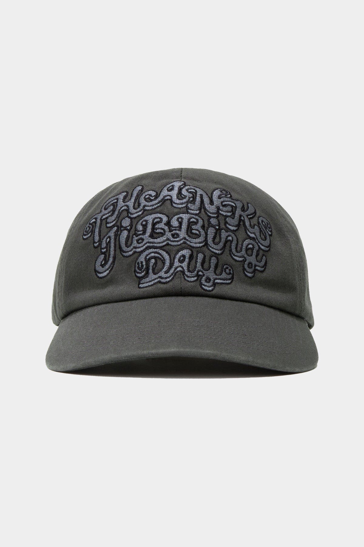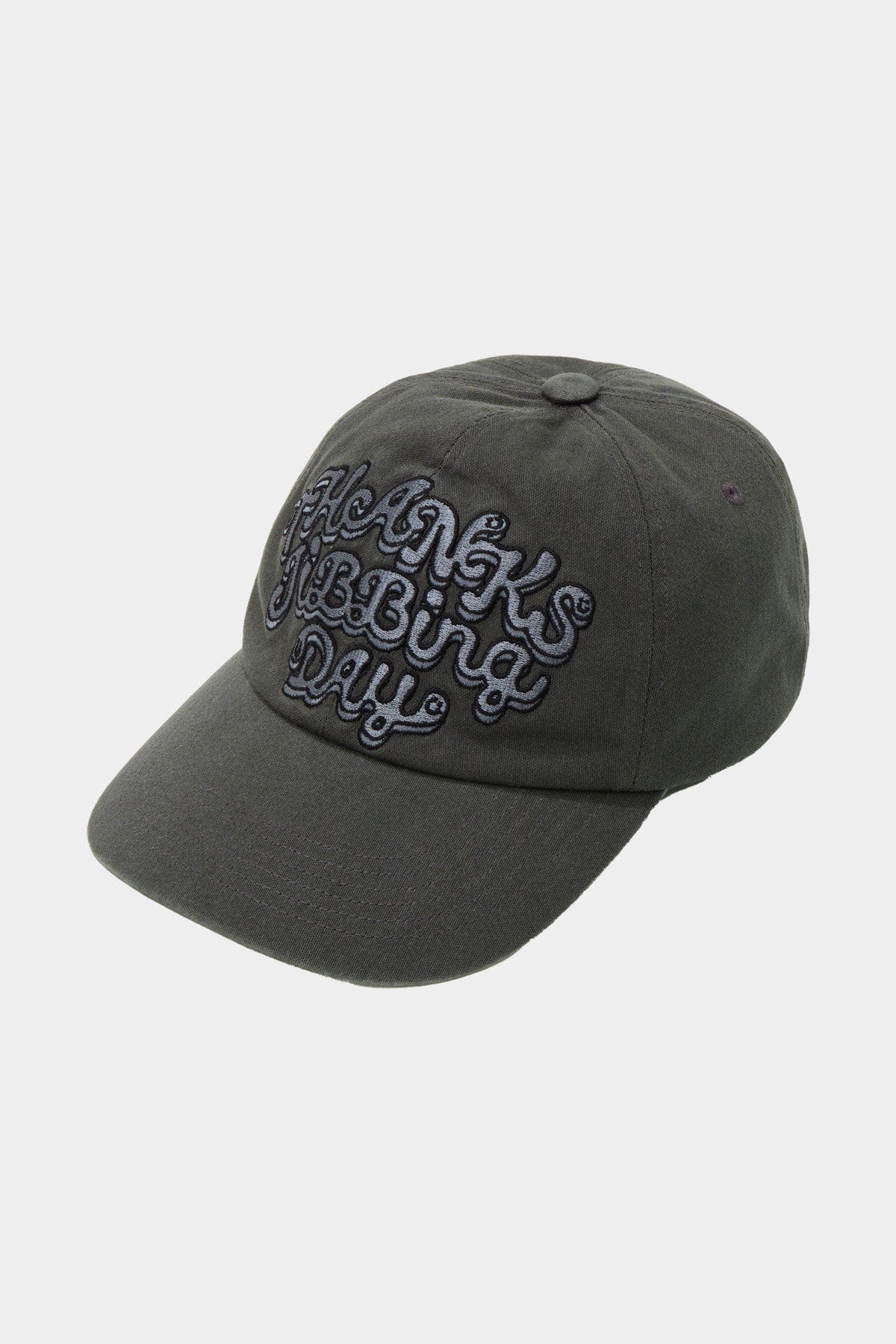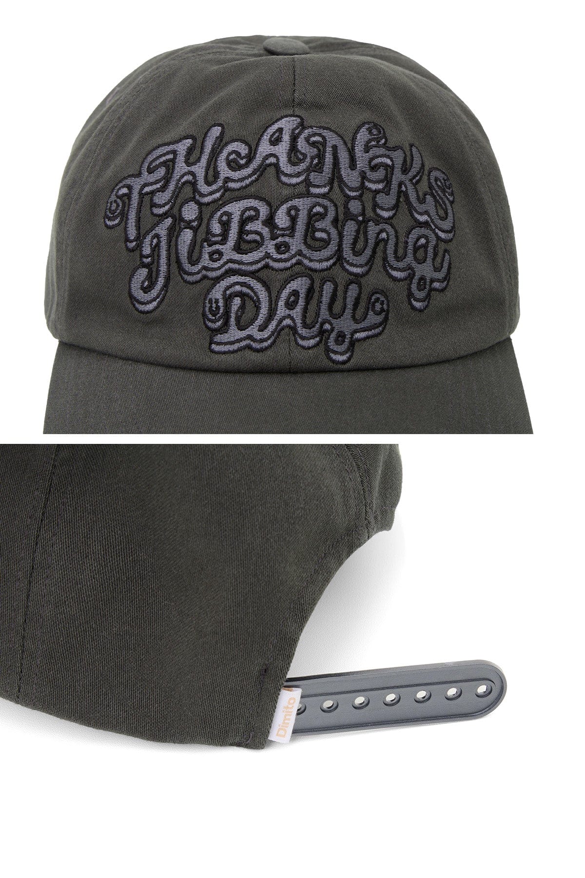 A 6-panel ball cap finished with a large Thanks Jibbing day signature embroidery artwork on the front and above the snap on the back. The vintage color scheme allows for matching with various styles while the back is accented with a snap and logo tab that can be adjusted for size fit.