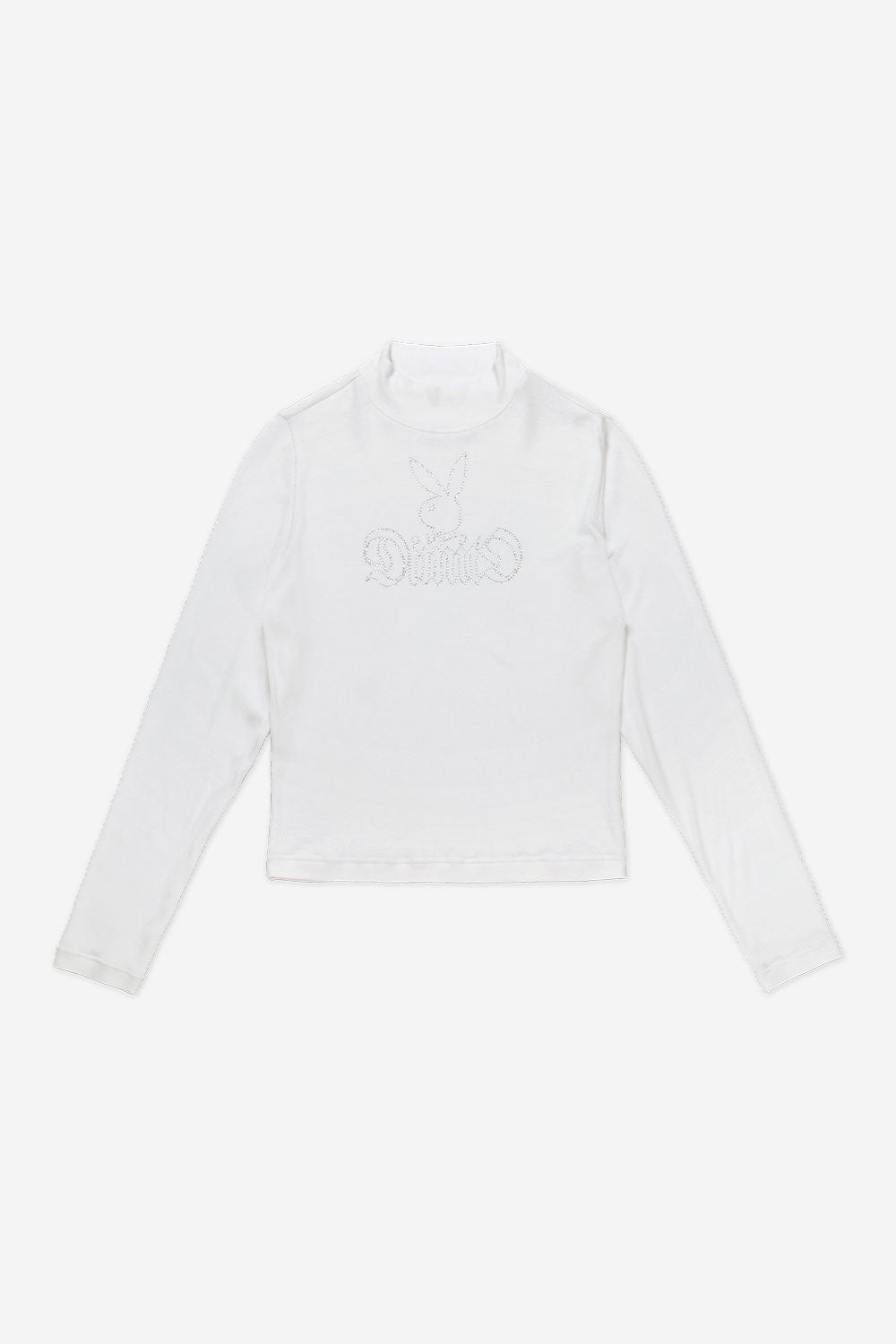 [PLAYBOY x DIMITO] BUNNY CHARMSTONE NECK TOP WHITE