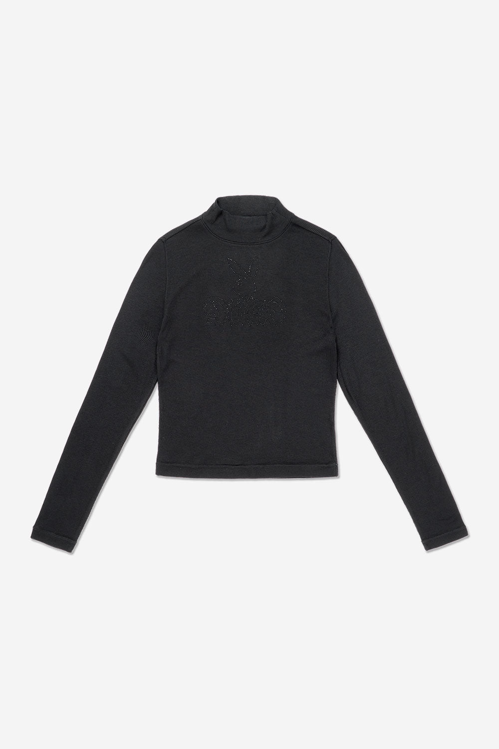 [PLAYBOY x DIMITO] BUNNY CHARMSTONE NECK TOP BLACK