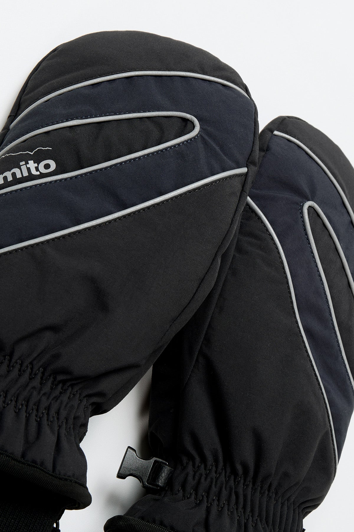 - Classic snowboard-style gloves featuring reflective piping and color-block
