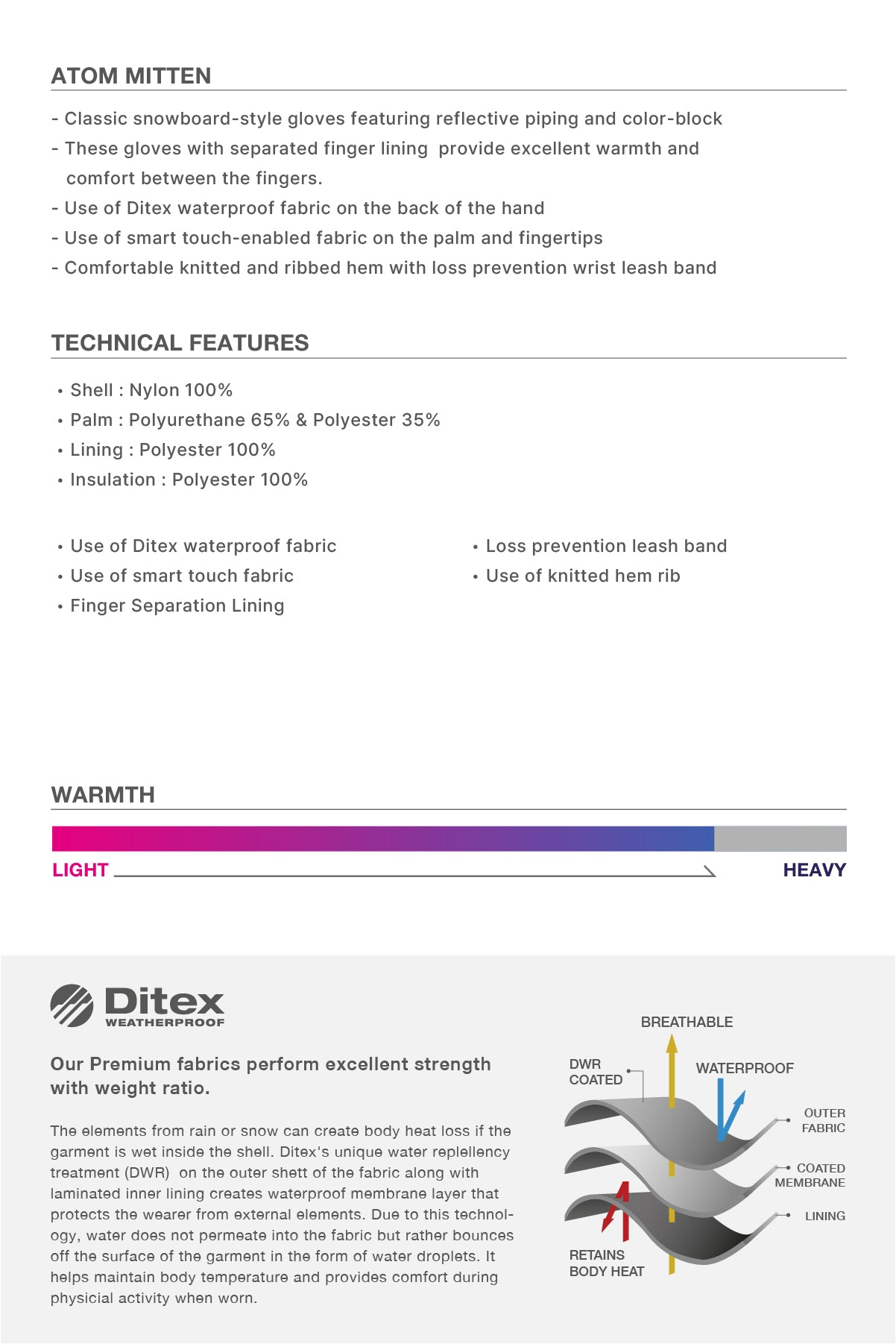 - Use of smart touch-enabled fabric on the palm and fingertips