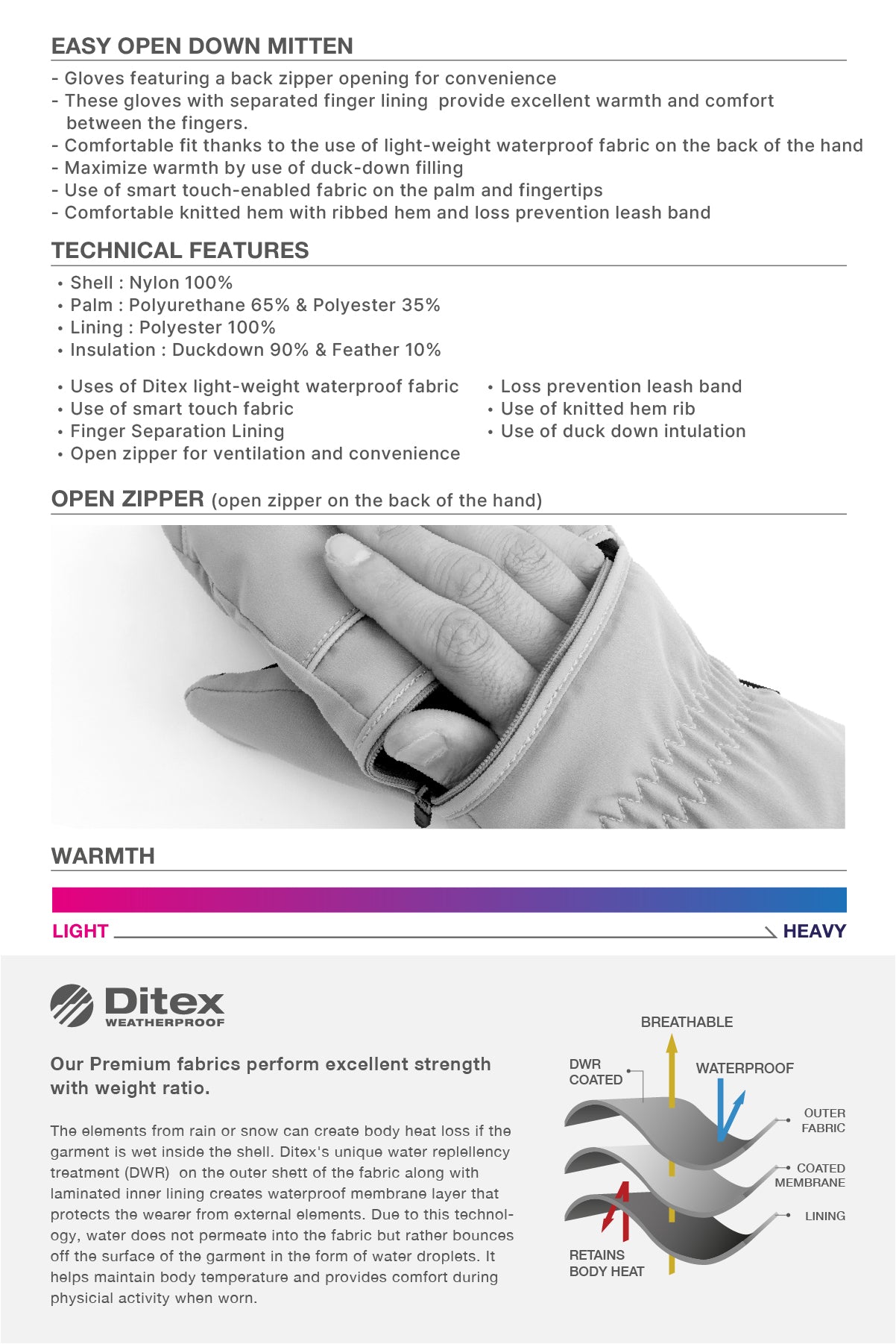 - Comfortable fit thanks to the use of light-weight waterproof fabric on the back of the hand