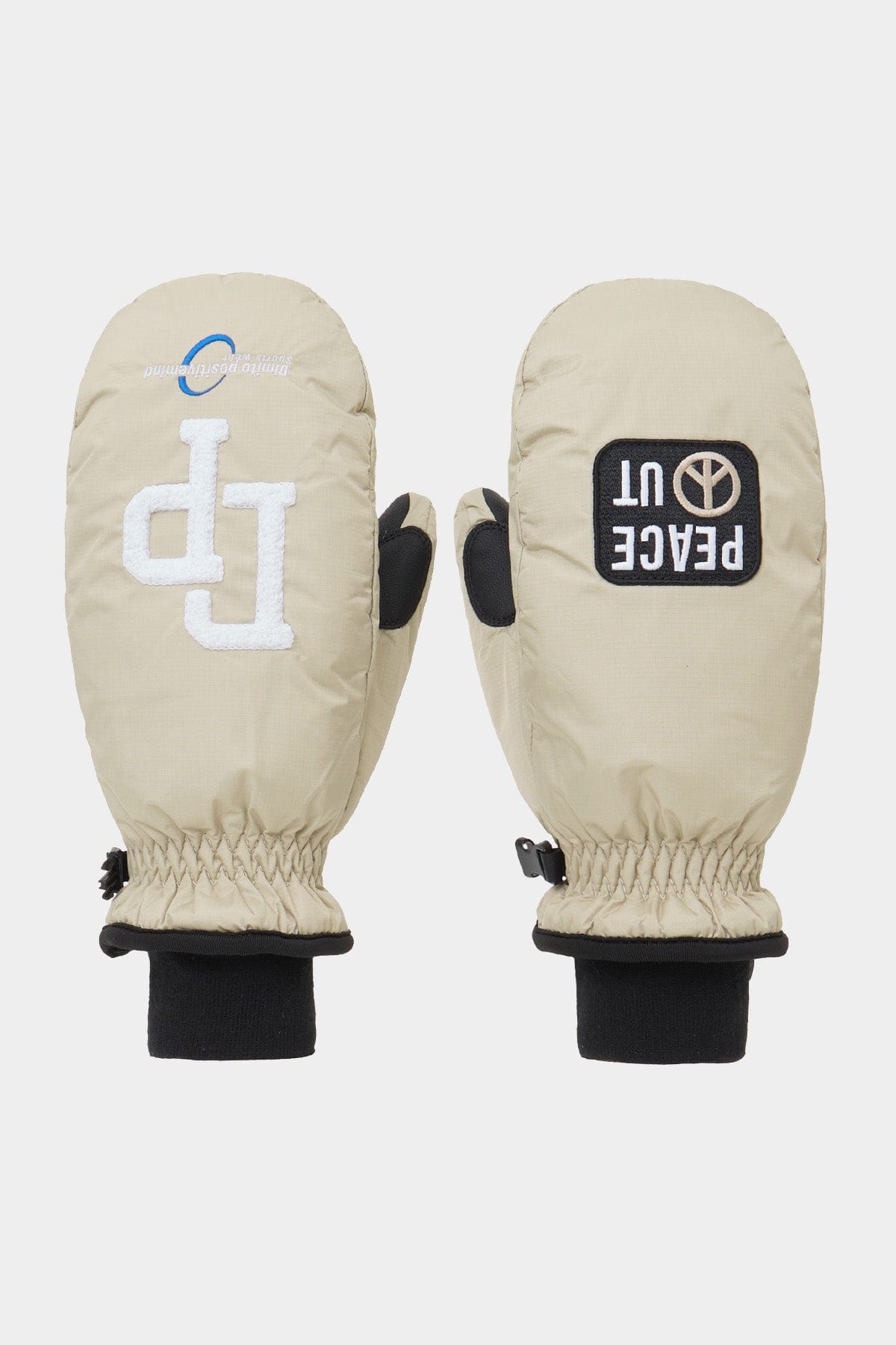 - Basic snowboard style gloves featuring bouclé artwork and embroidered patches.