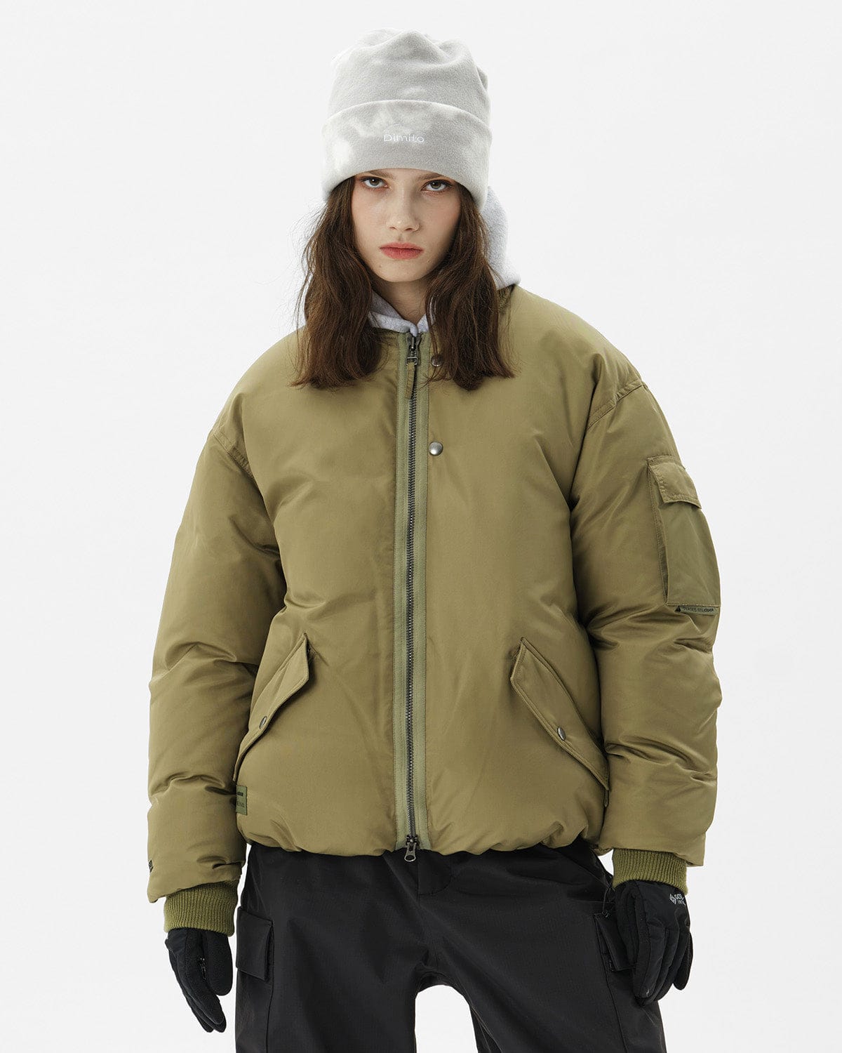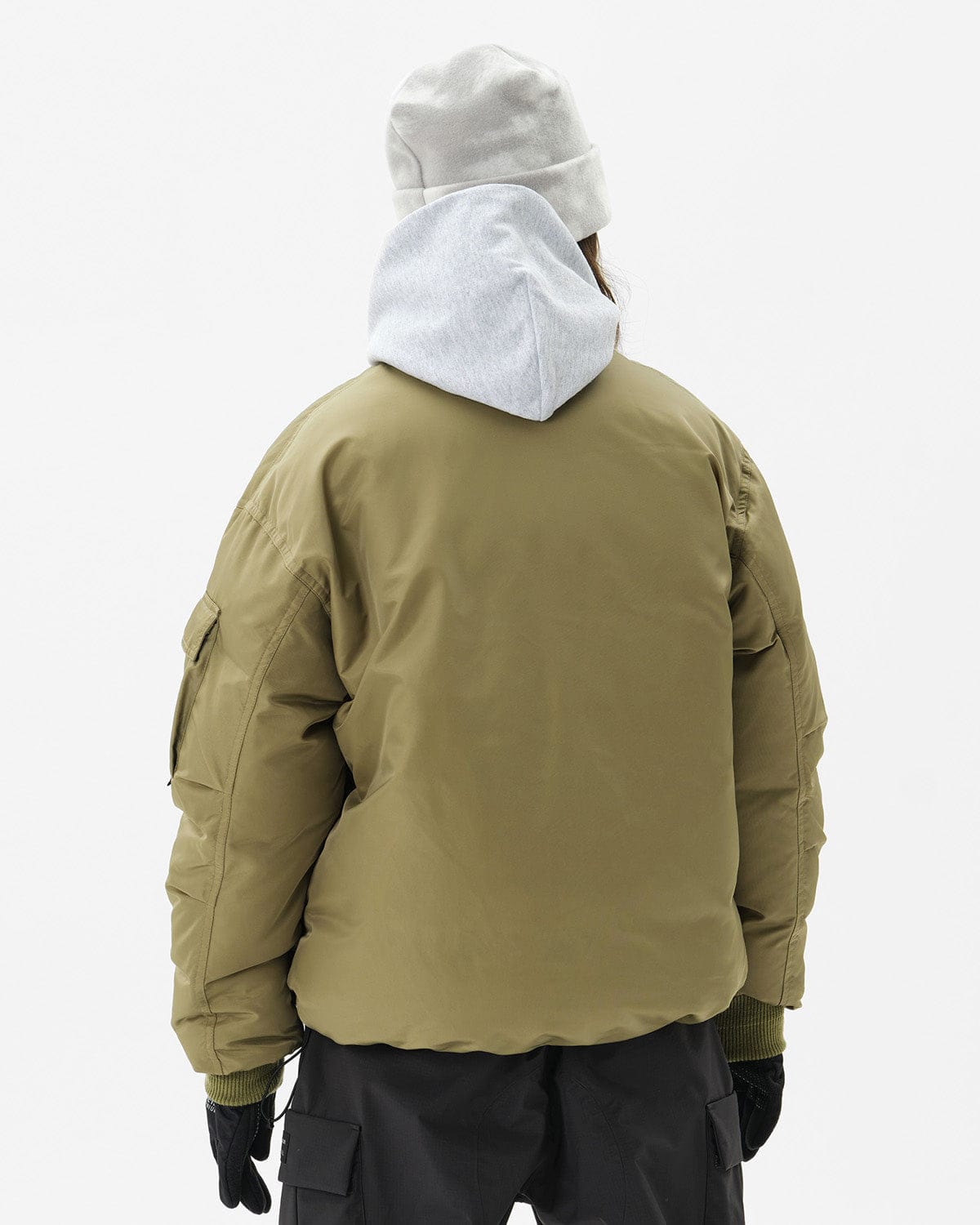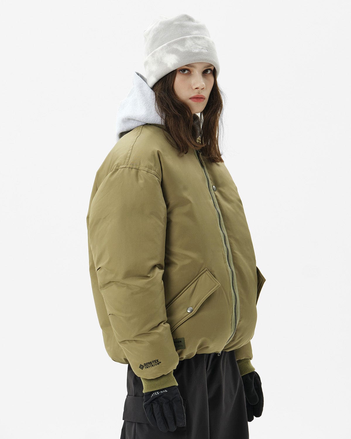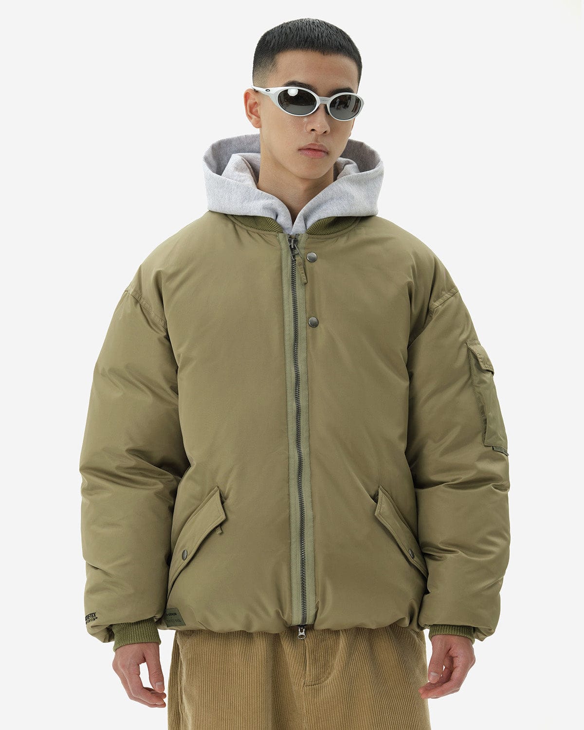 It is a unique pilot jumper style down jacket that realizes high warmth