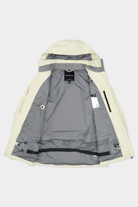 - Hood with easy size adjustment and elastic string & stopper applied to the hem