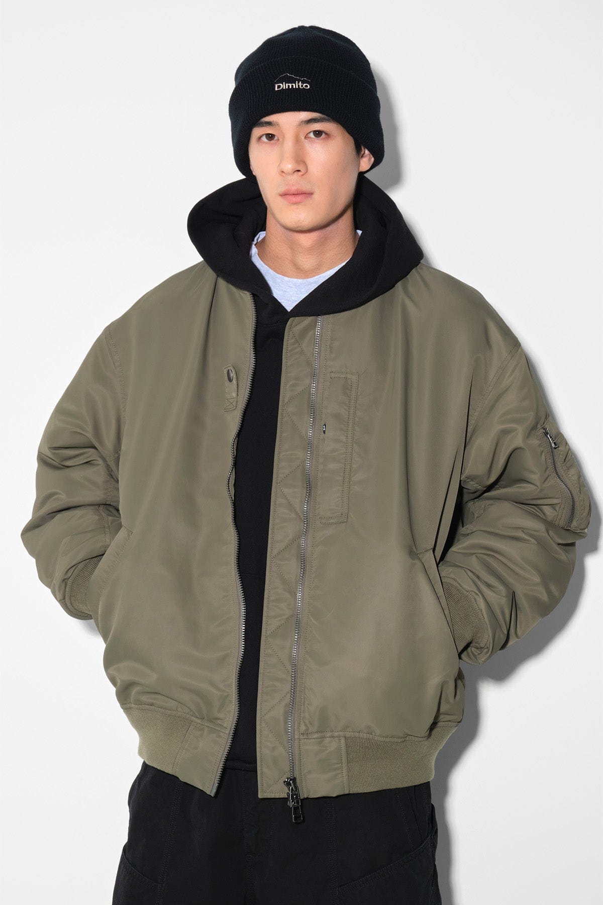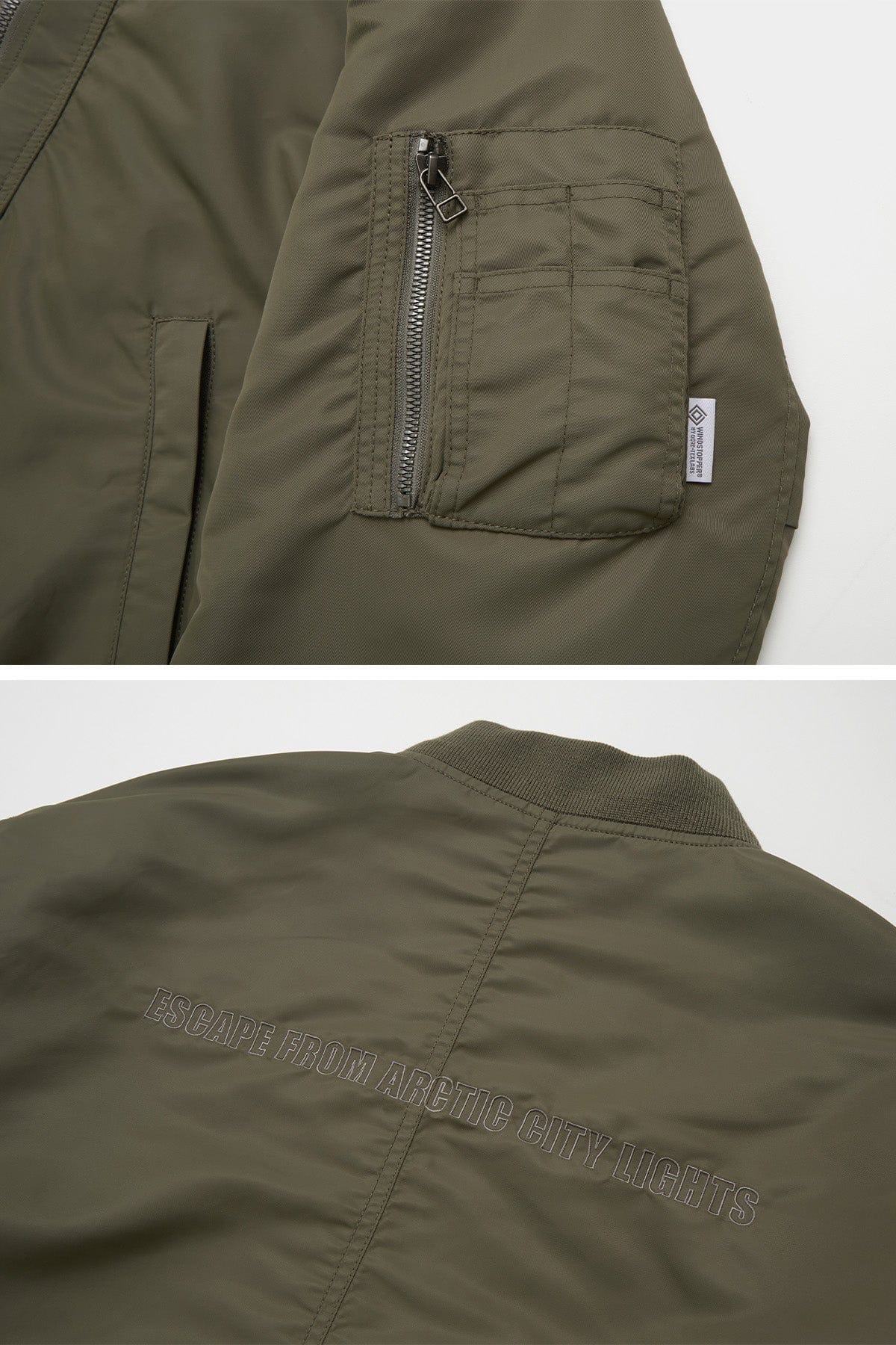 - Military style jacket that reimagines the original MA-1