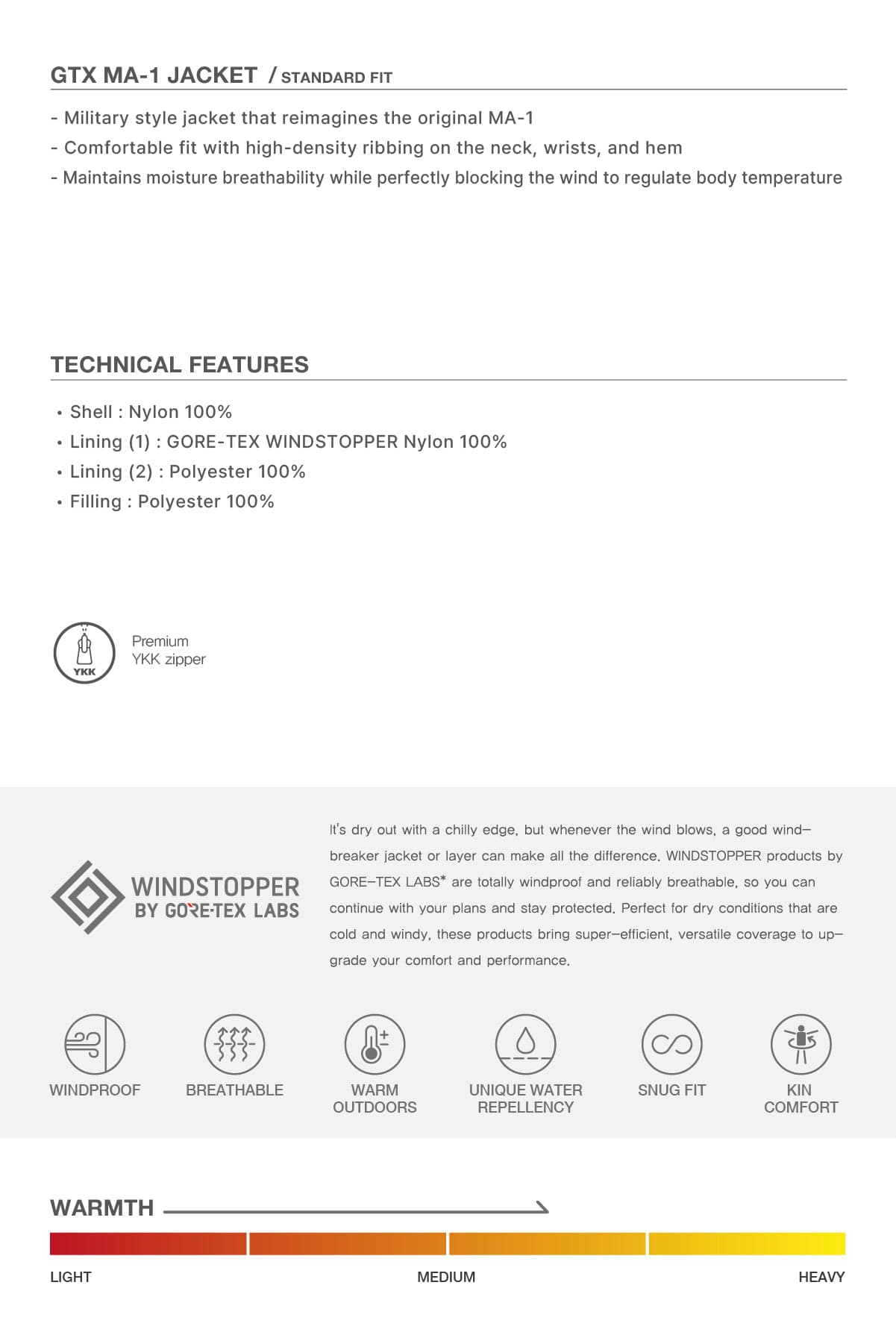 Lining(1) : GORE-TEX WINDSTOPPER Nylon 100%