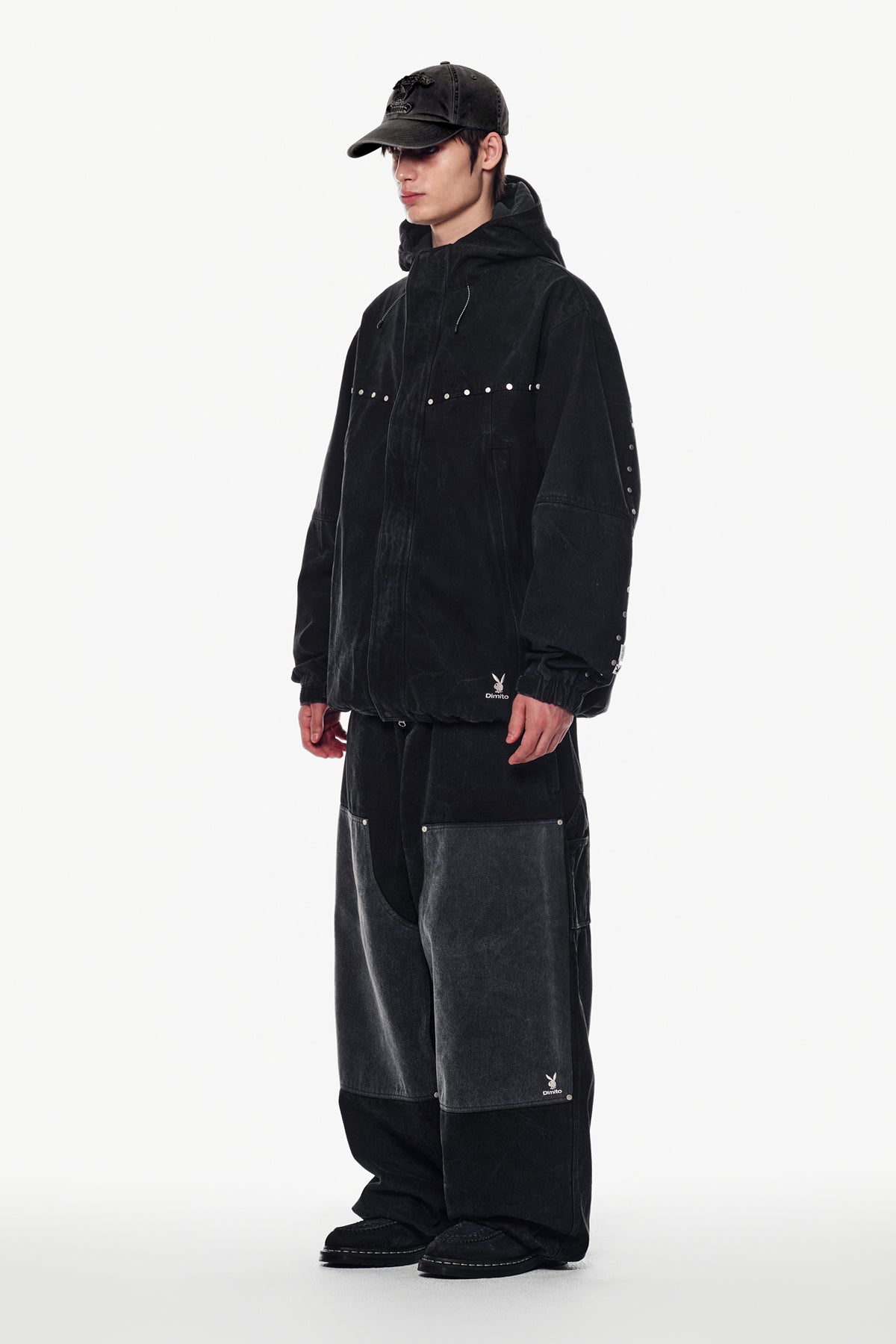 [PLAYBOY x DIMITO] STUD WESTERN DENIM JACKET WASHED BLACK
