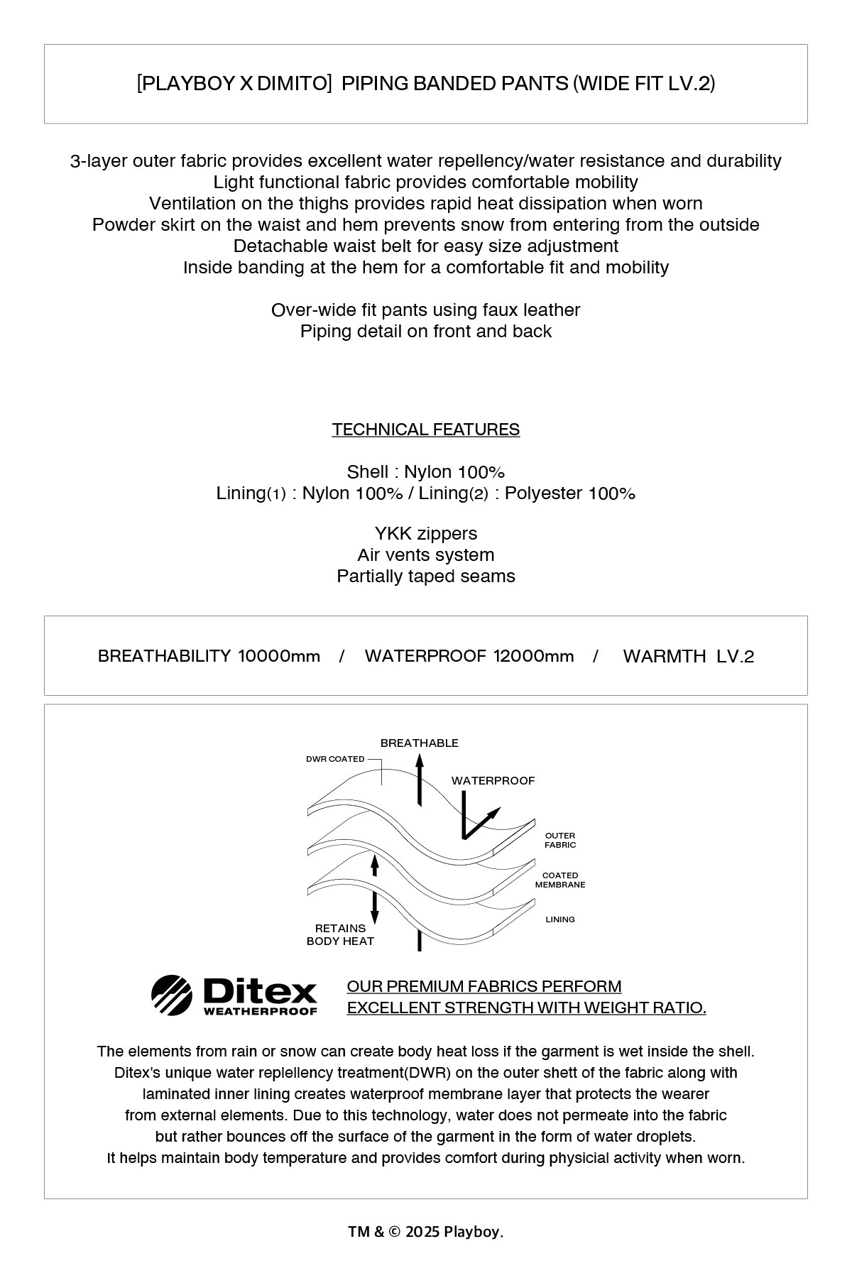 - Waterproof : 12K / Breathability : 10K
