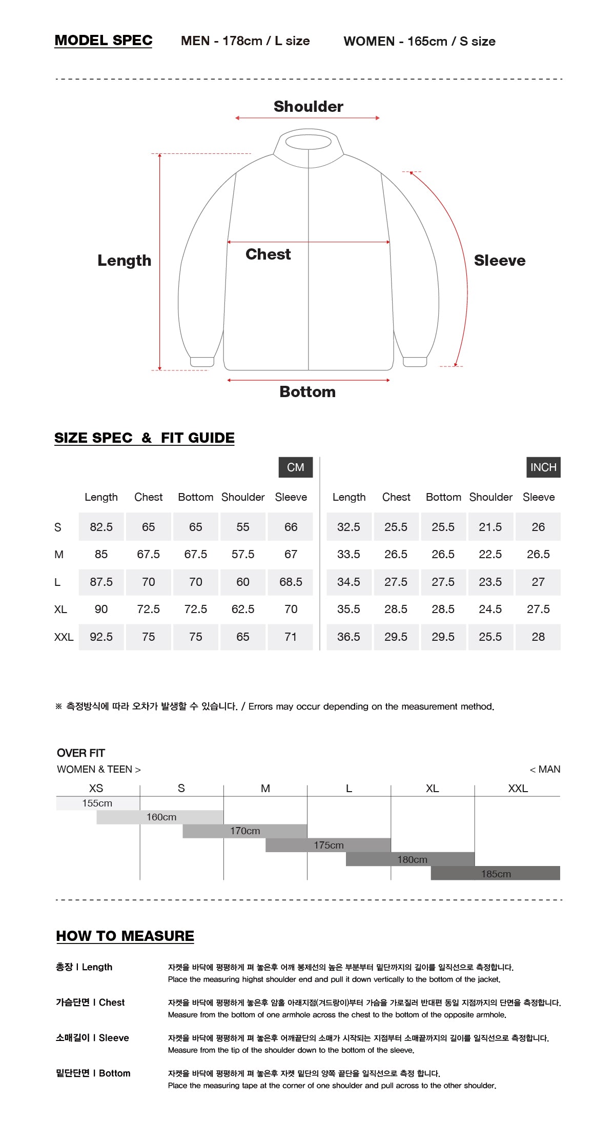 * Model spec : MEN - 178cm, L size / WOMEN - 165cm, S size