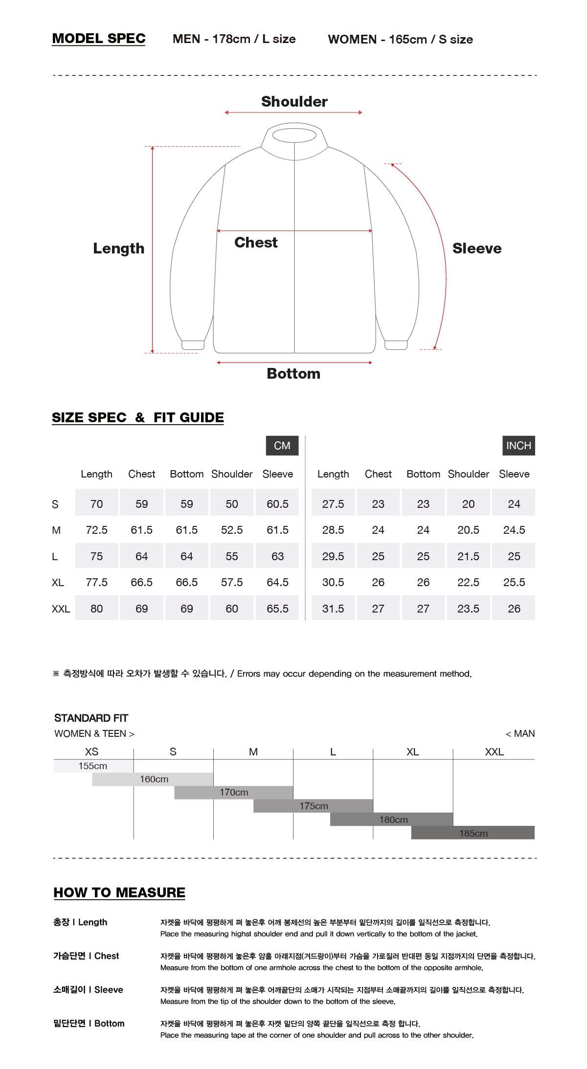 * Model spec : MEN - 178cm, L size / WOMEN - 165cm, S size