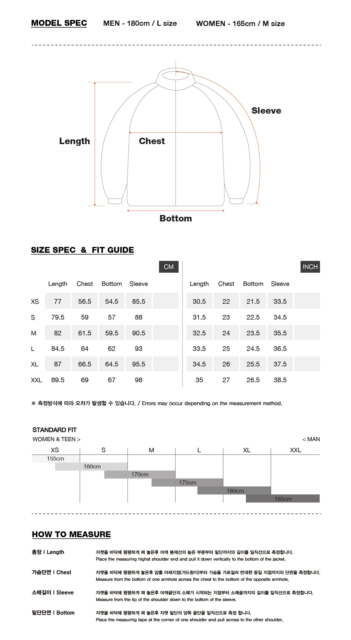 * Model spec : MEN - 180cm, L size / WOMEN - 165cm, M size