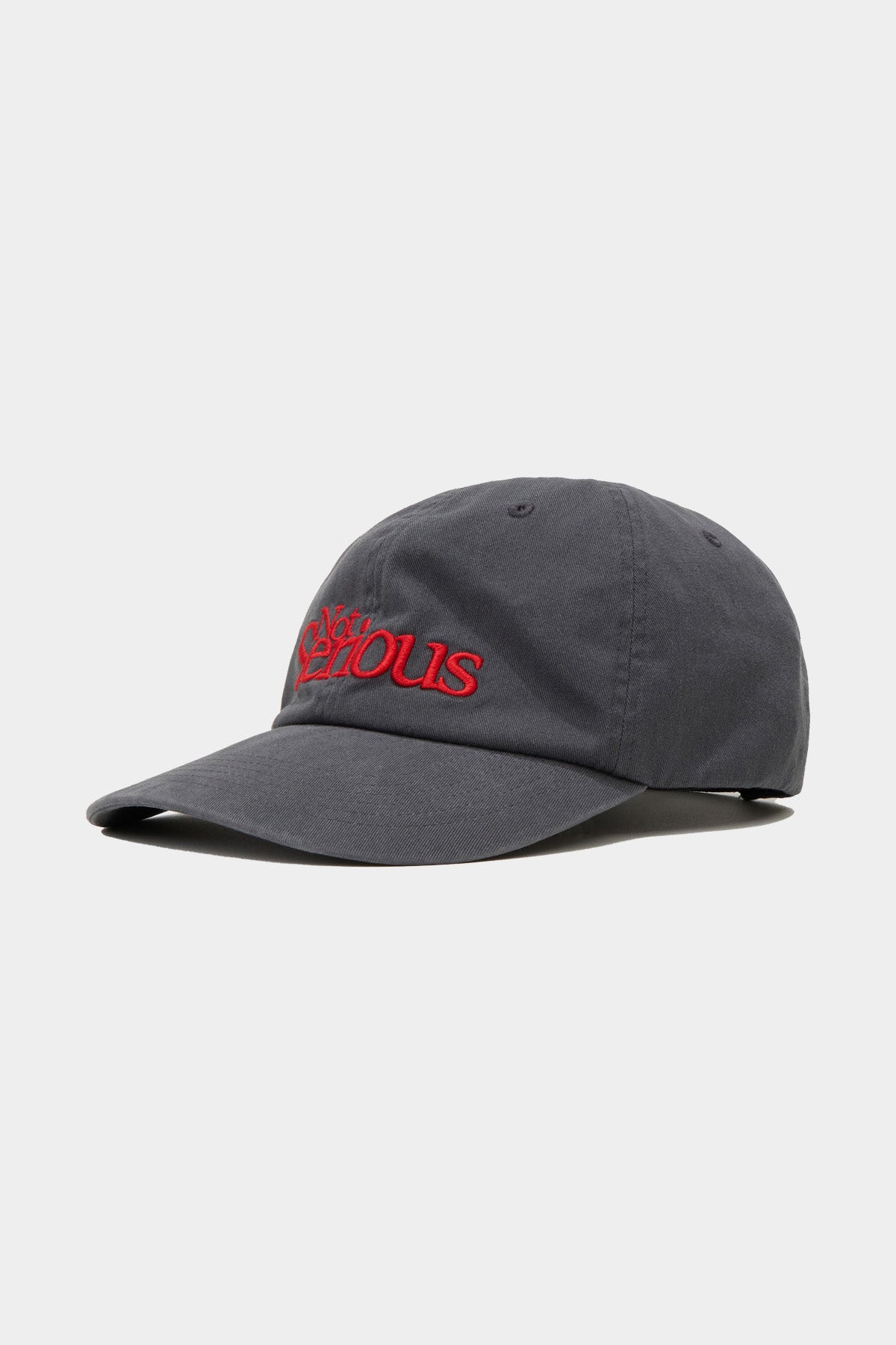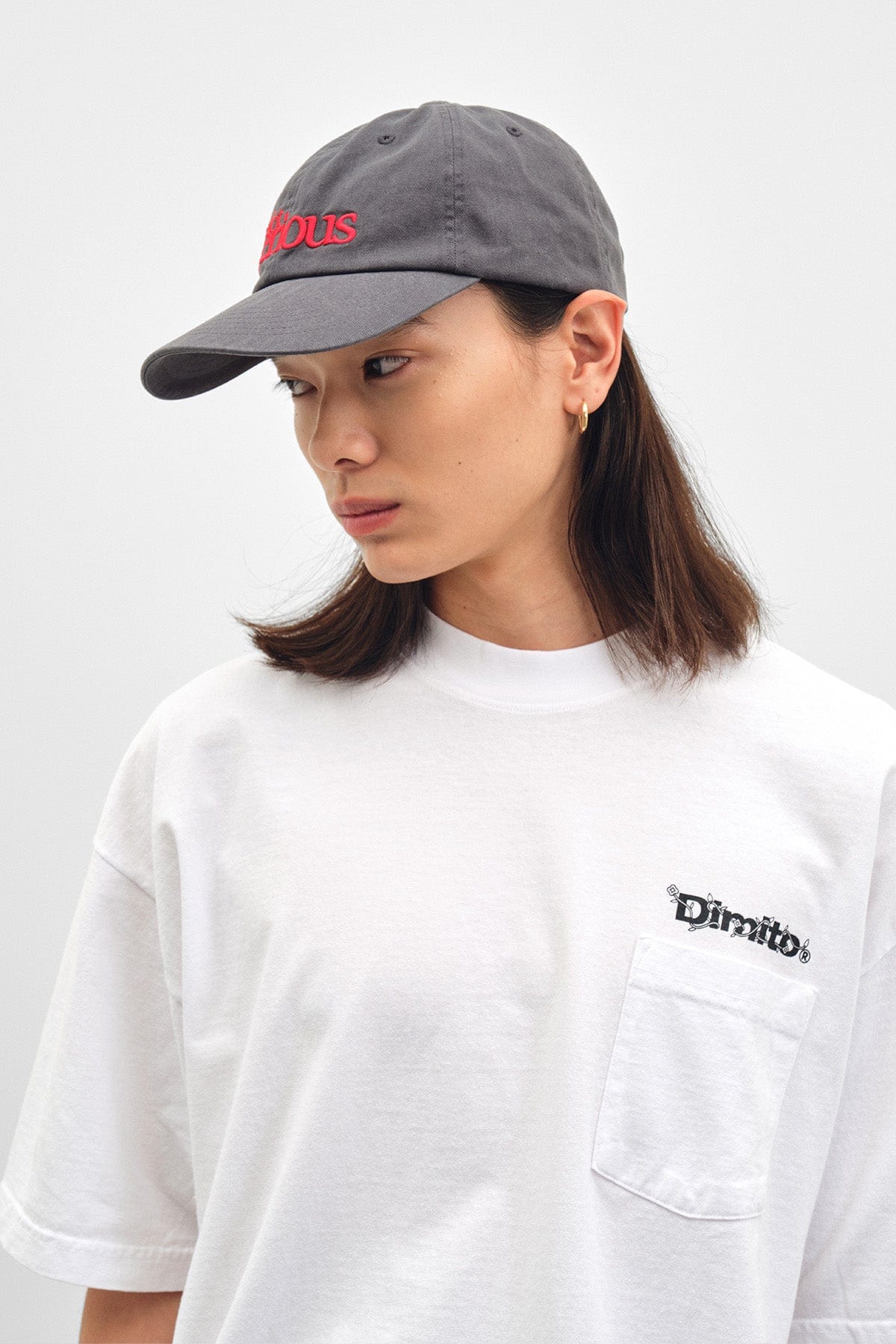 This 6-panel ball cap is made of solid cotton material and eyelets. The hat is accented with witty campaign artwork embroidery with popping color. It features a natural curved brim and a classic silhouette while the leather back strap allows for easy size adjustment with a luxurious look.
