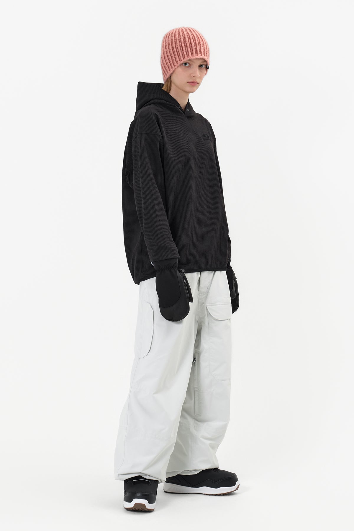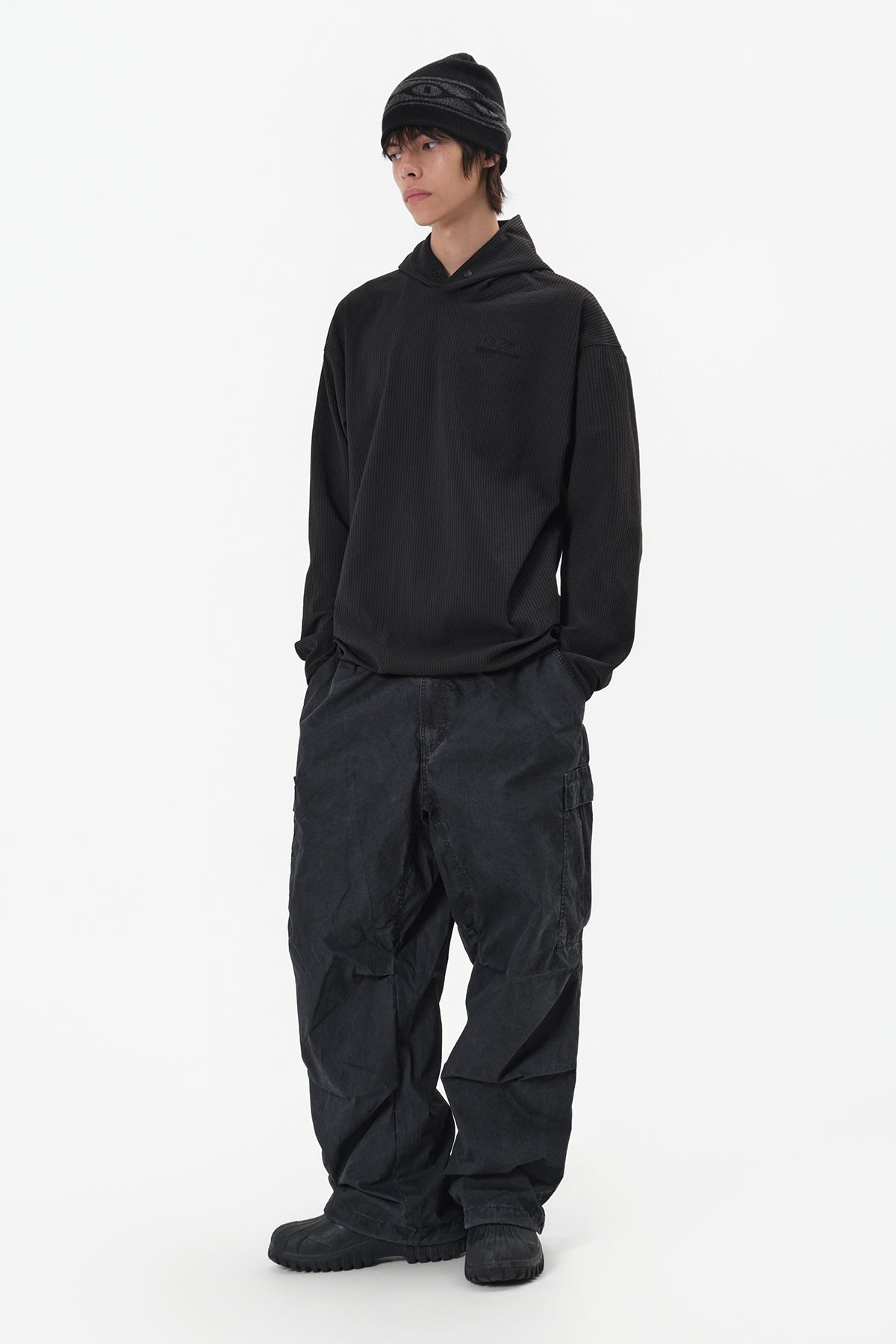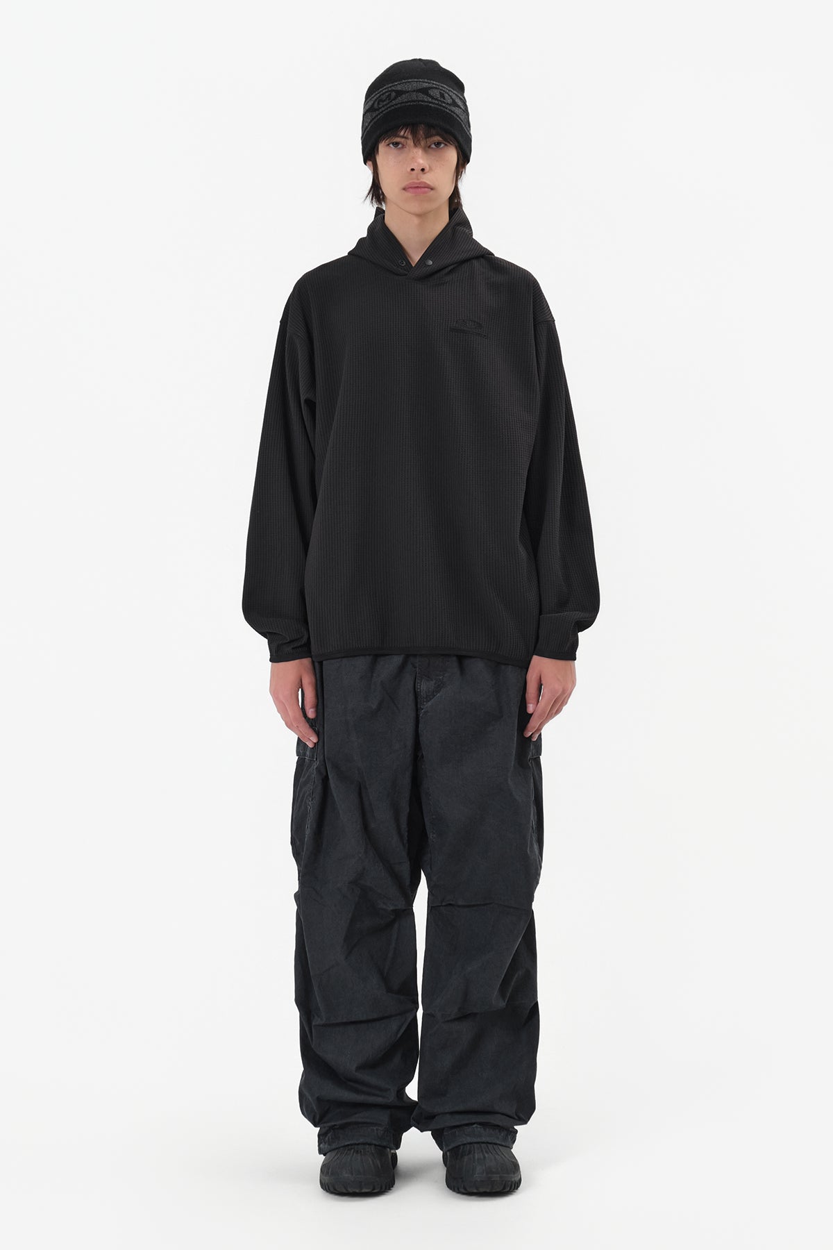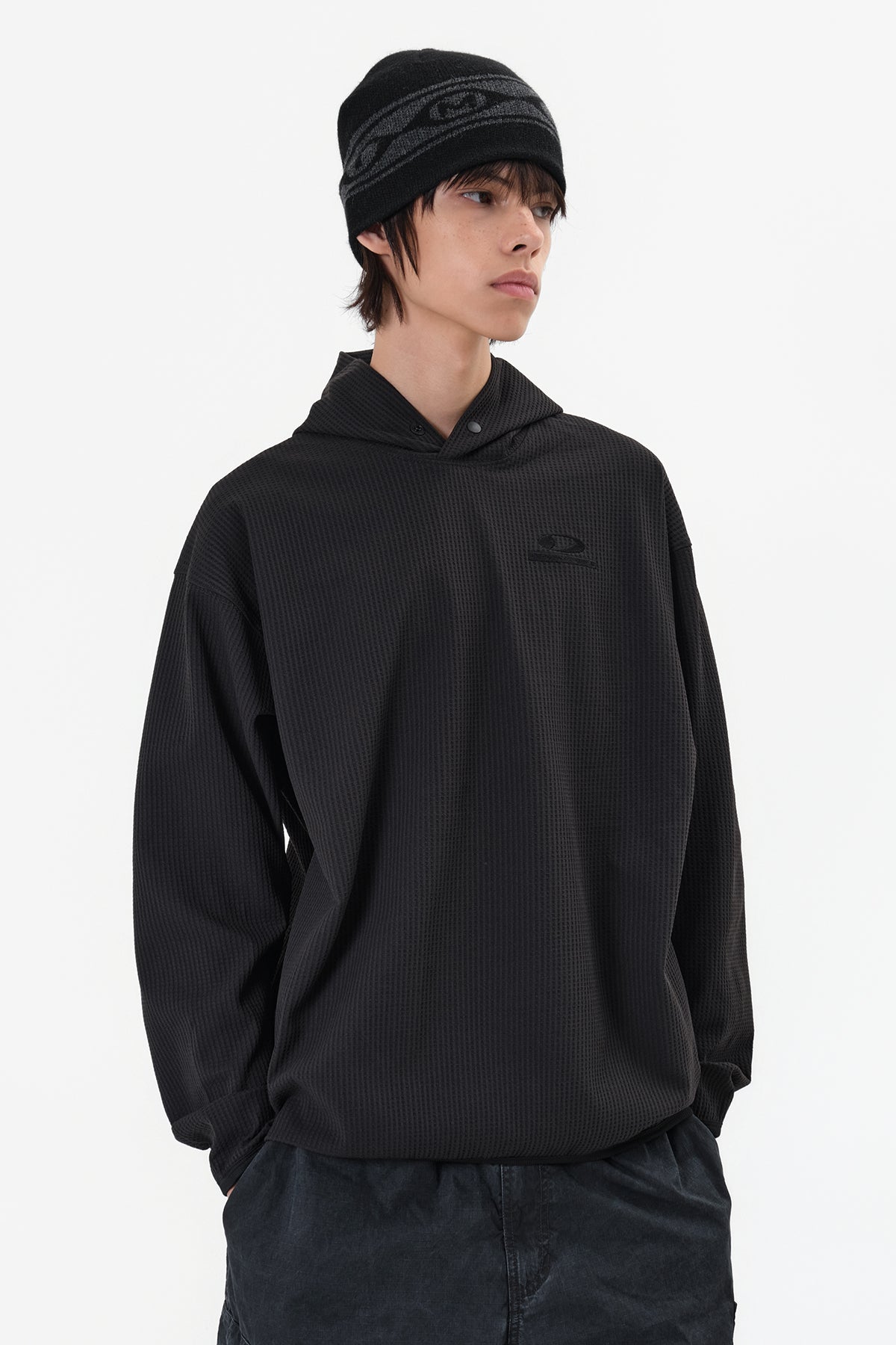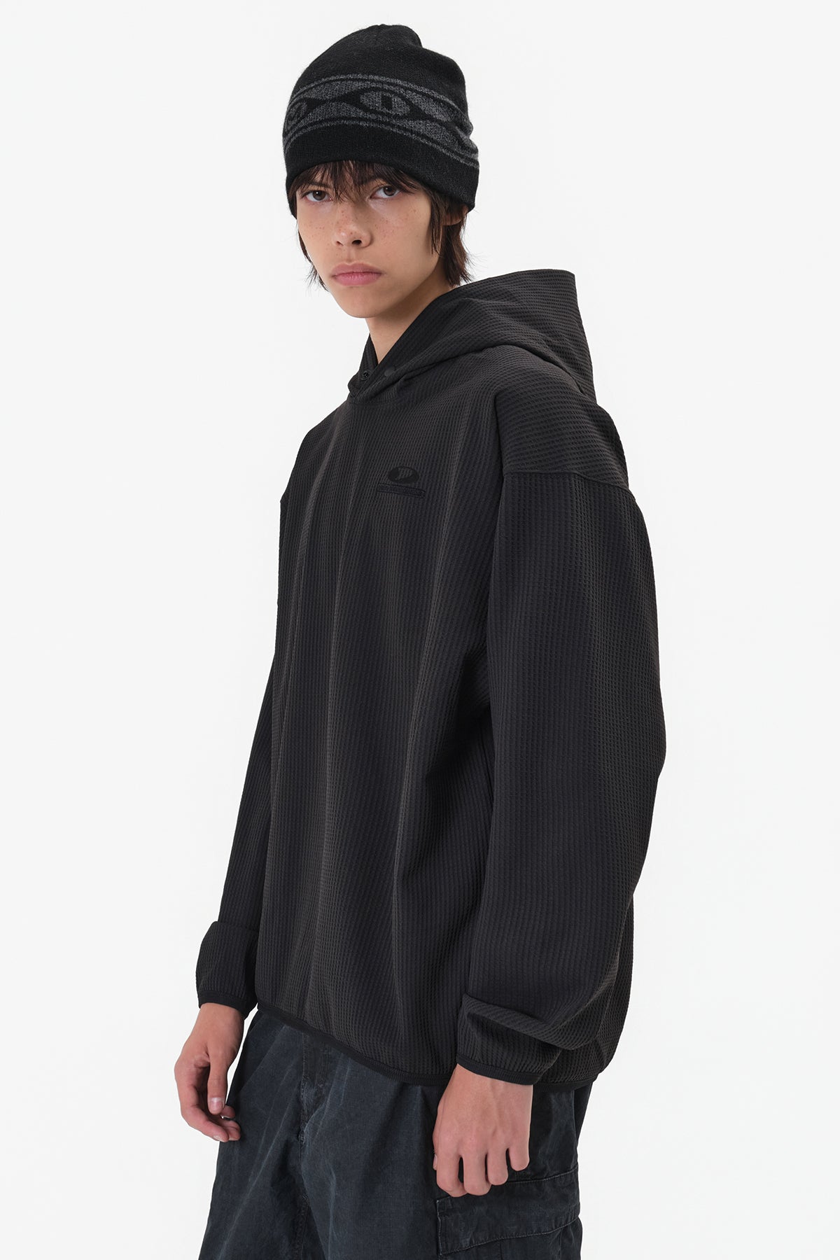 LIGHT WEIGHT WAFFLE HOODIE BLACK