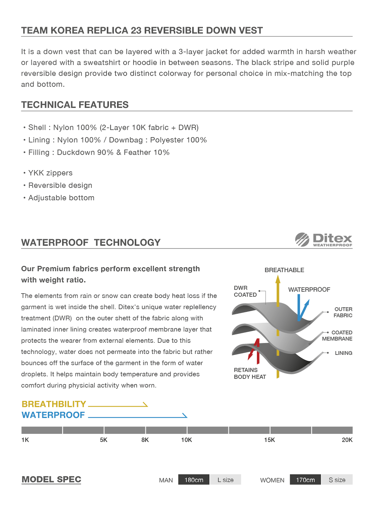 Even in the extremist of cold weather,you can wear this item as an additional layeringitem over the 3-layer jacket or you can layer it witha spring season sweatshirt or hoodie for a stylish look.It is reversible design of solid purple andblack stripes providing matching colorway as set-up fortwo completely different look. The ¡®KOREA¡¯ embroidery onthe back represents the aspect of Team Korea.