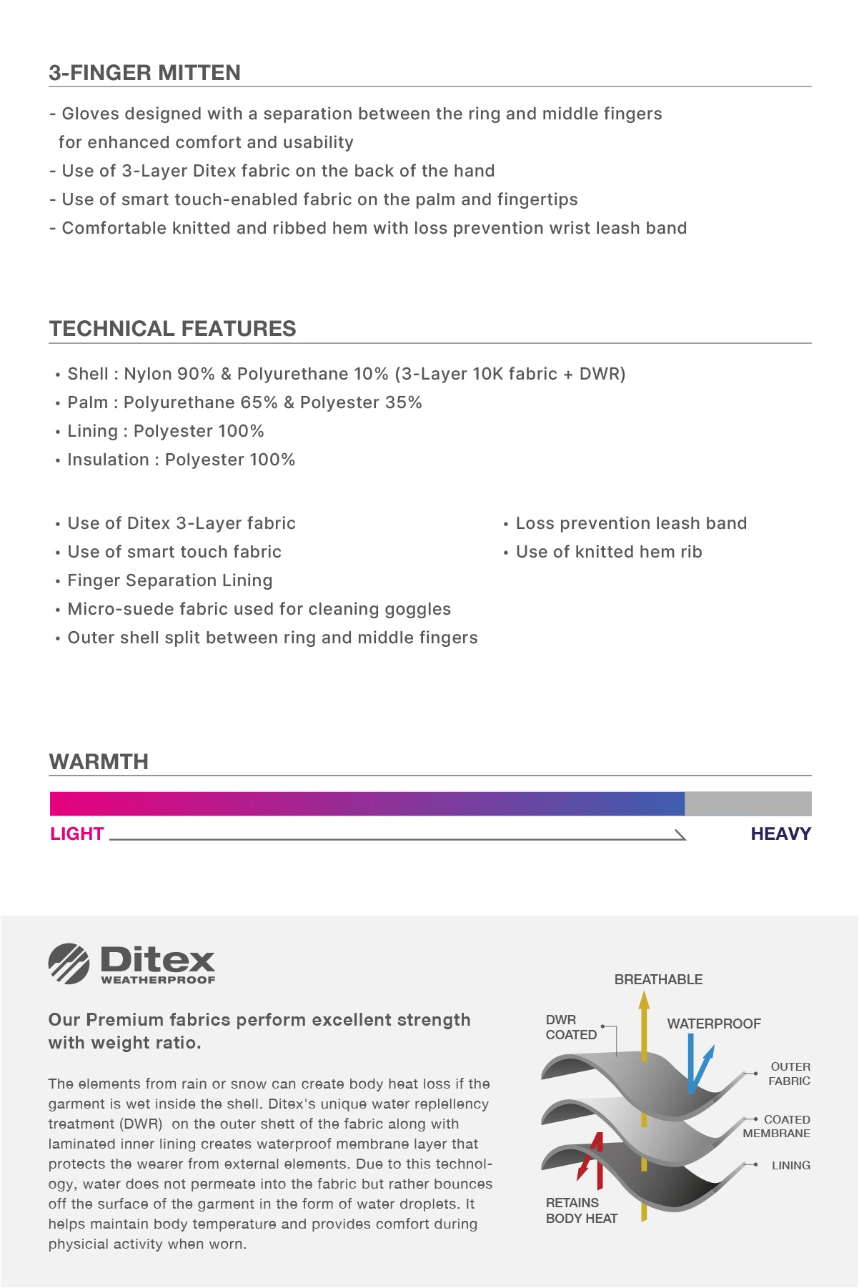 - Use of 3-Layer Ditex fabric on the back of the hand