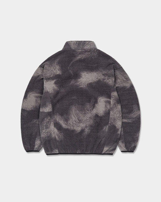 This is a fleece half-zip shirt made of fleece material with a soft and cozy feel to the touch. Even in winter, you can maintain warm body temperature even if you wear it with a lightweight outerwear together without any discomfort due to its light fit. The design features a tie-dye-style pattern print and a relaxed fit along with a front zip pocket for comfortable wear during various activities or lifestyle.