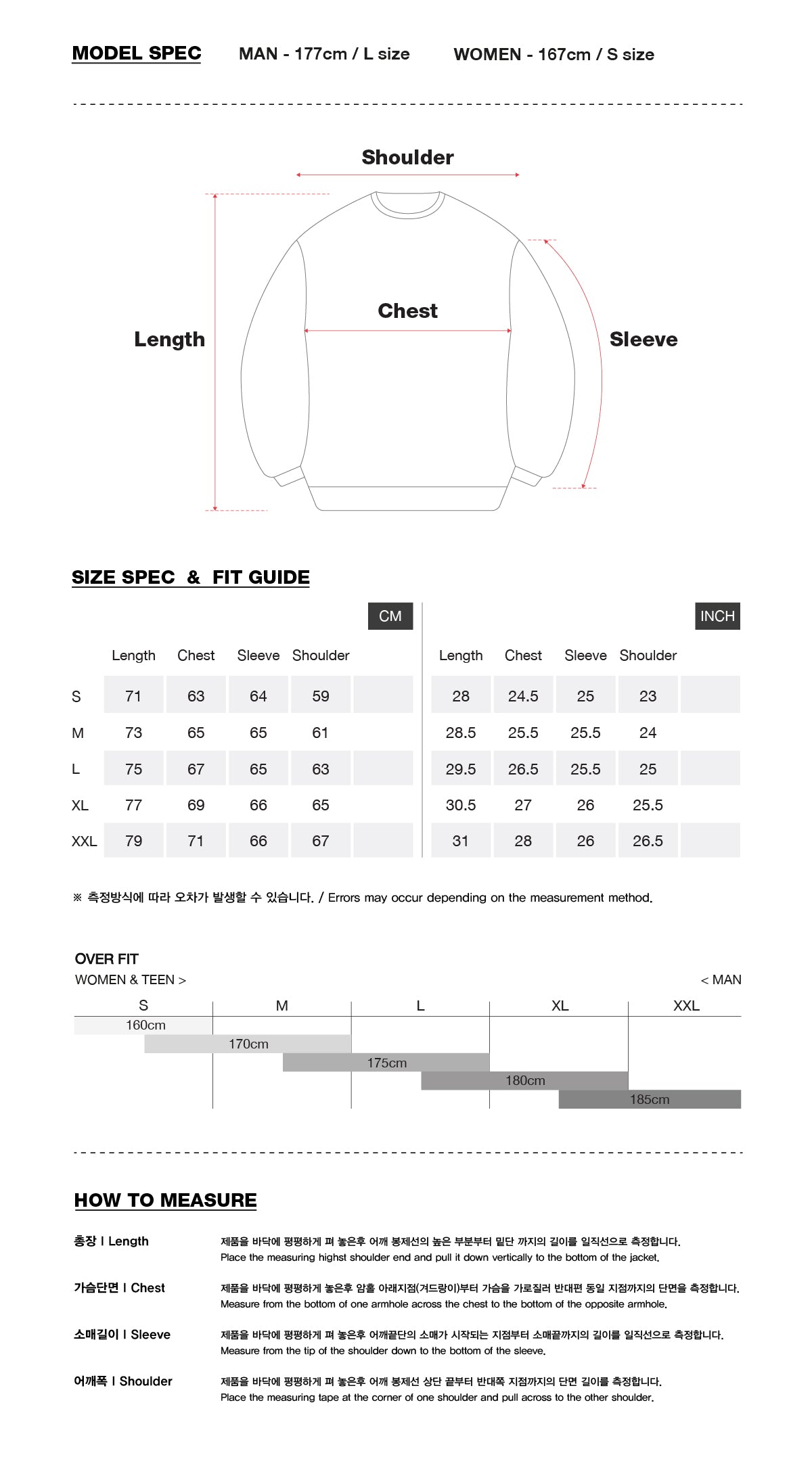 * Model spec : MEN - 177cm, L size / WOMEN - 167cm, S size