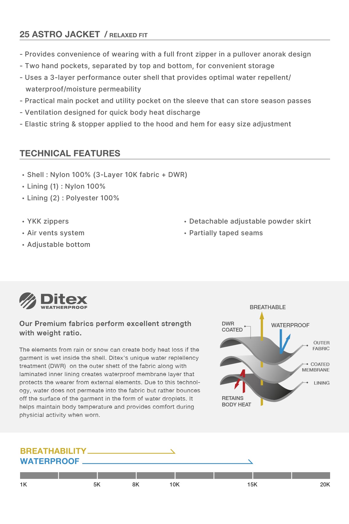 - Uses a 3-layer performance outer shell that provides optimal water repellent/ waterproot/moisture permeability