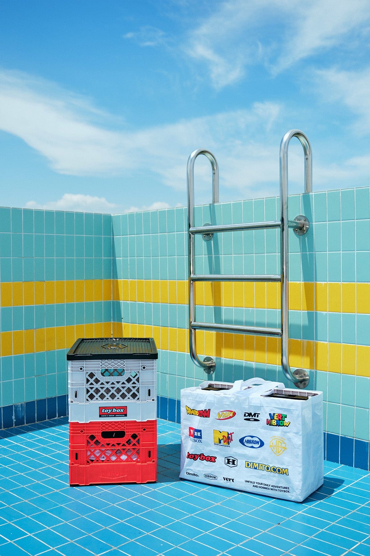 * (Flip Box), released with an exclusive design by DIMITO x HIBROW, is a product with capacity of 40 liters that can be used not only as an outdoor transport box, but also for storing various daily necessities with ease and also as a storage box for various hobby collection items.