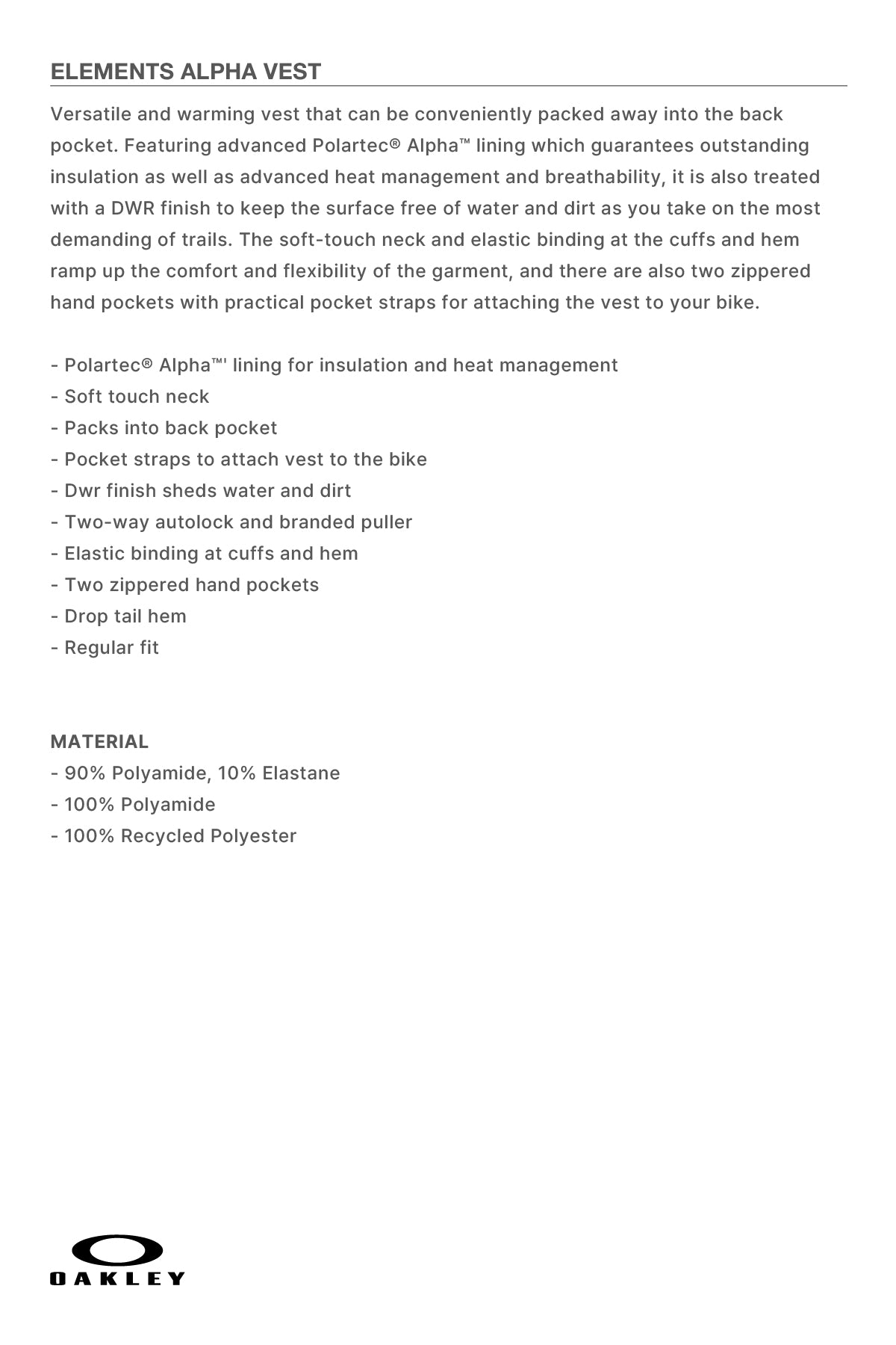 [OAKLEY] ELEMENTS ALPHA VEST ARMY GREEN/NEW BALSAM