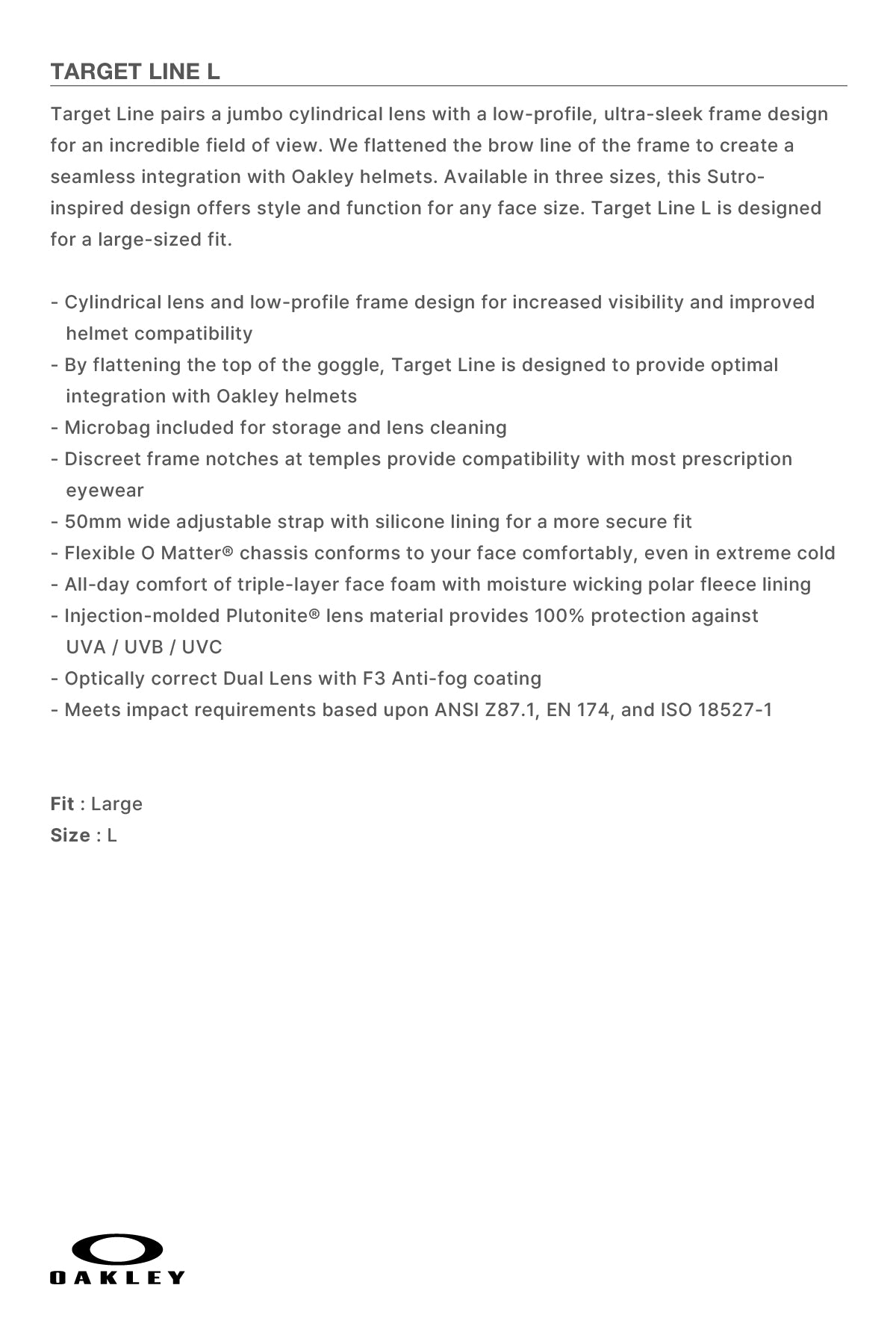- By flattening the top of the goggle, Target Line is designed to provide optimal integration with Oakley helmets