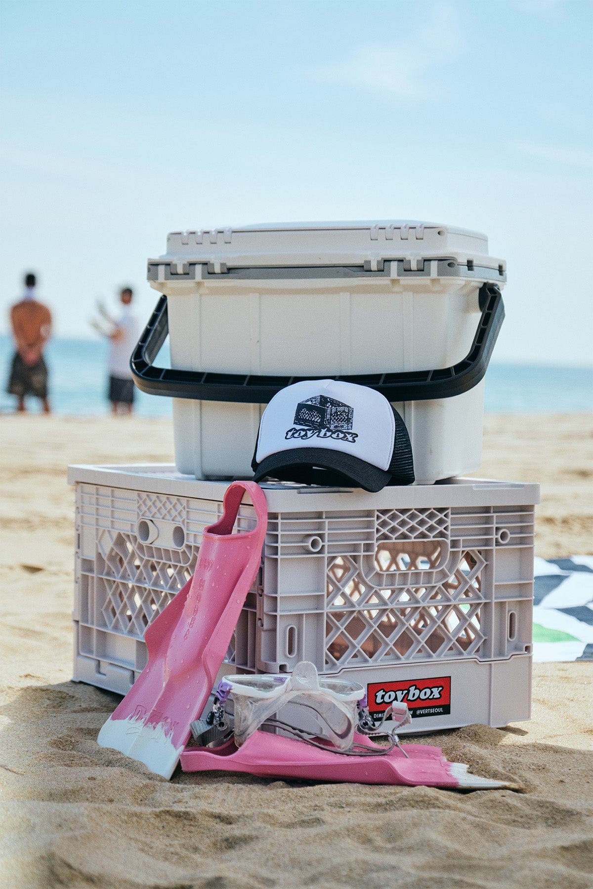 * (Flip Box), released with an exclusive design by DIMITO x HIBROW, is a product with capacity of 40 liters that can be used not only as an outdoor transport box, but also for storing various daily necessities with ease and also as a storage box for various hobby collection items.