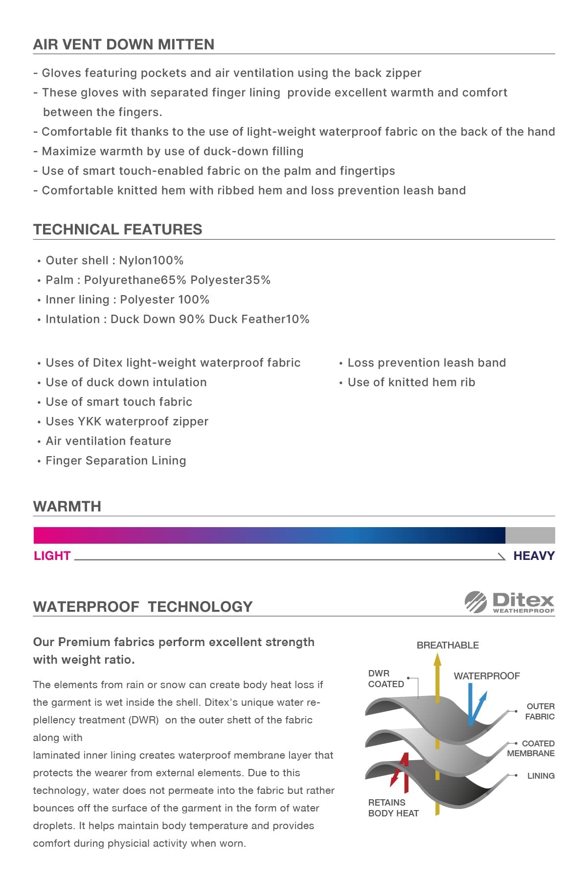 - Comfortable fit thanks to the use of light-weight waterproof fabric on the back of the hand