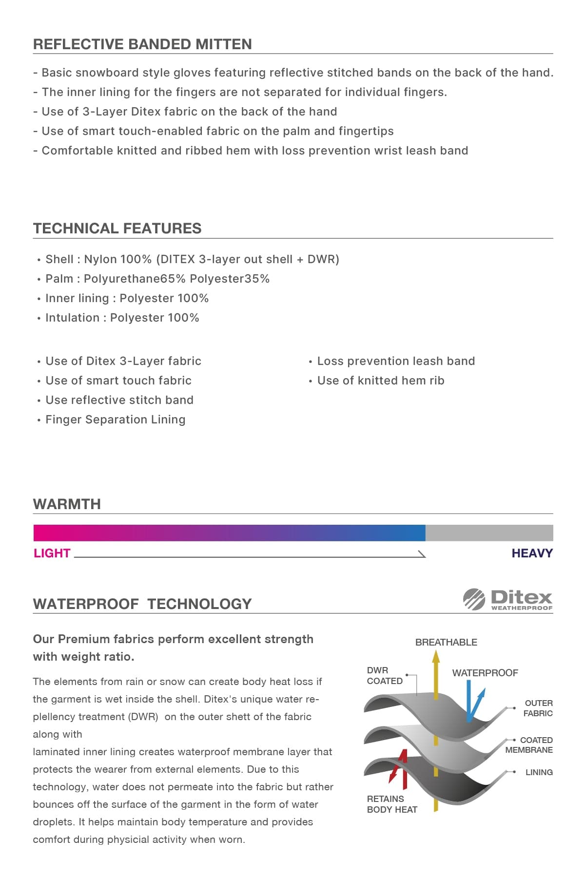 - Use of 3-Layer Ditex fabric on the back of the hand