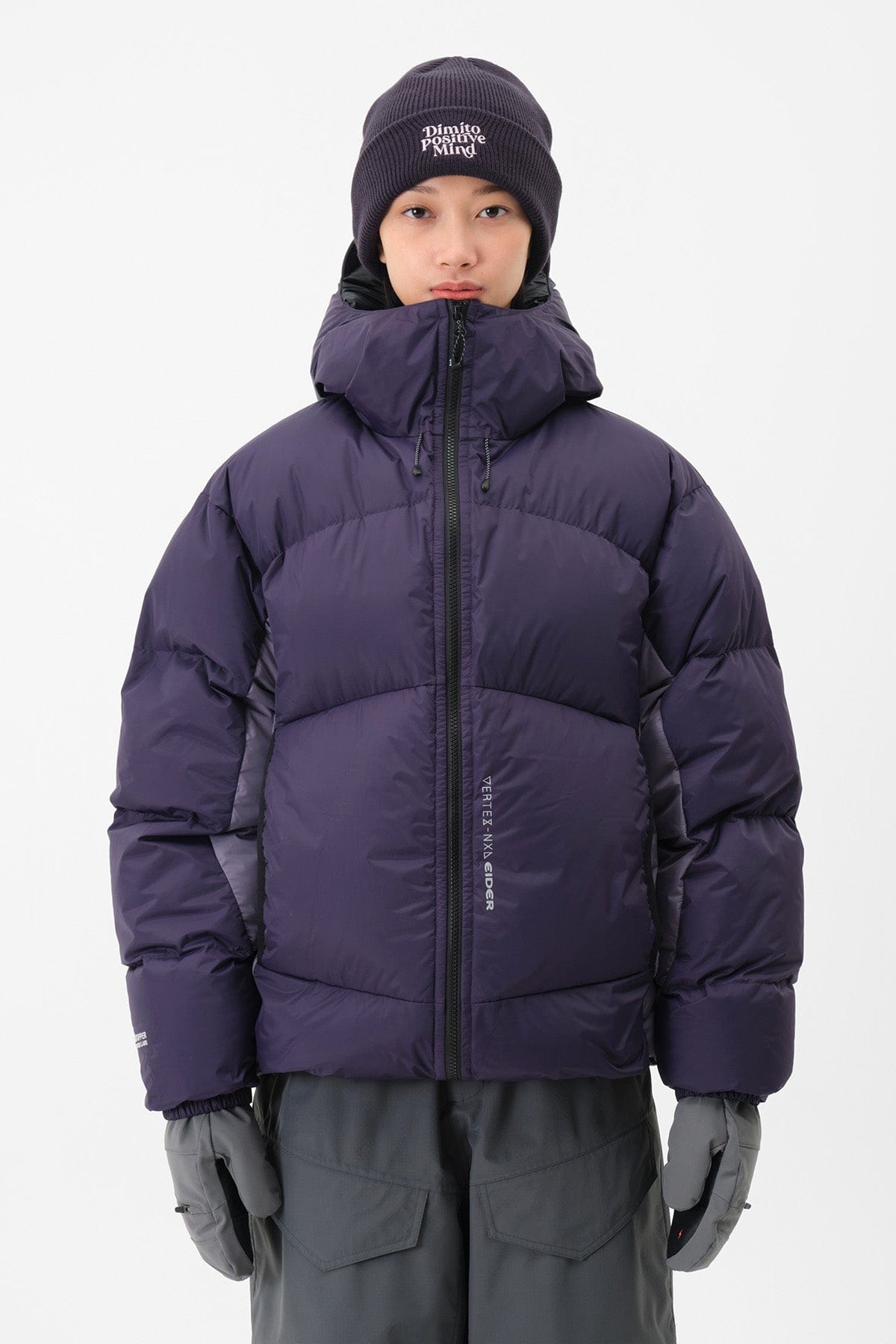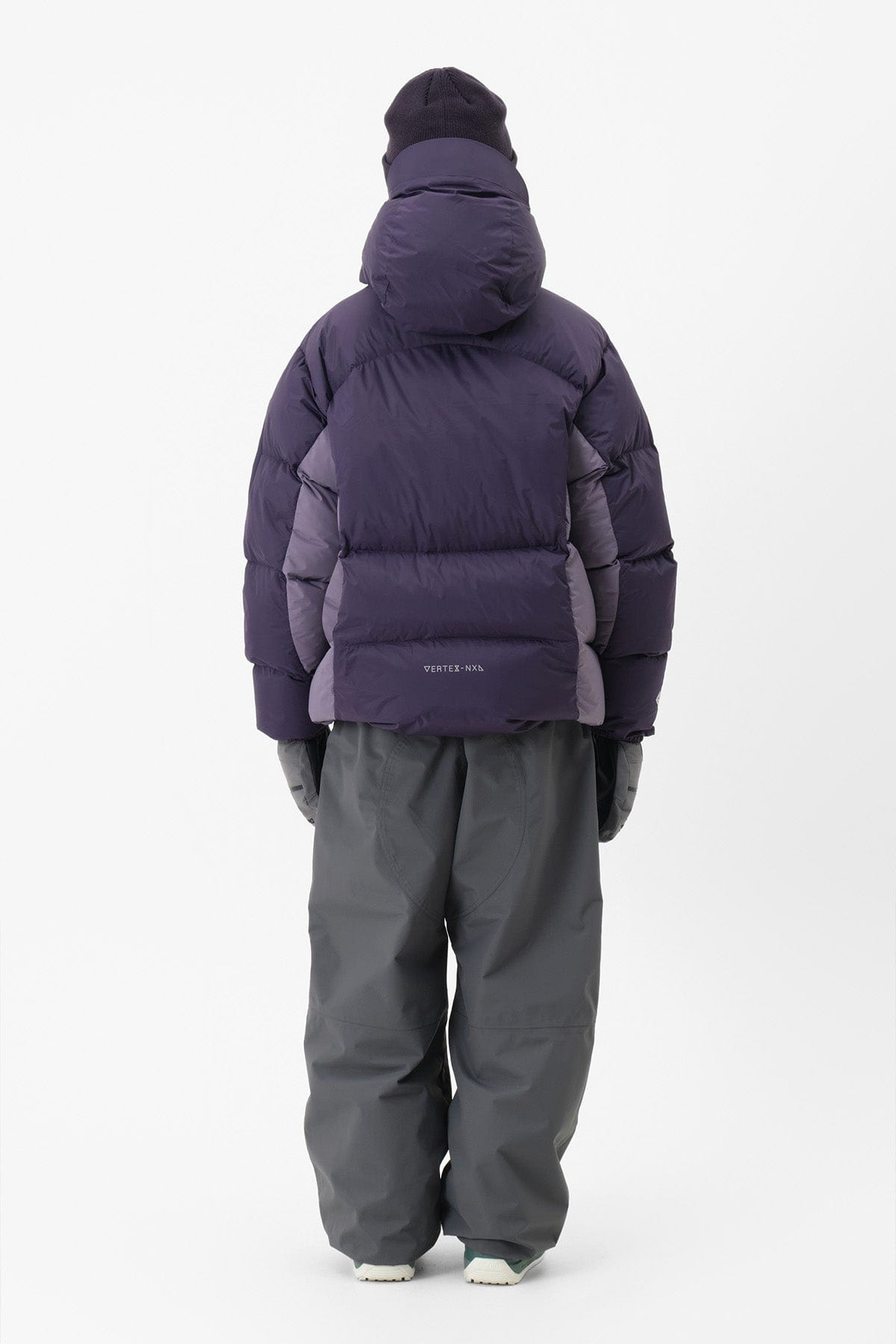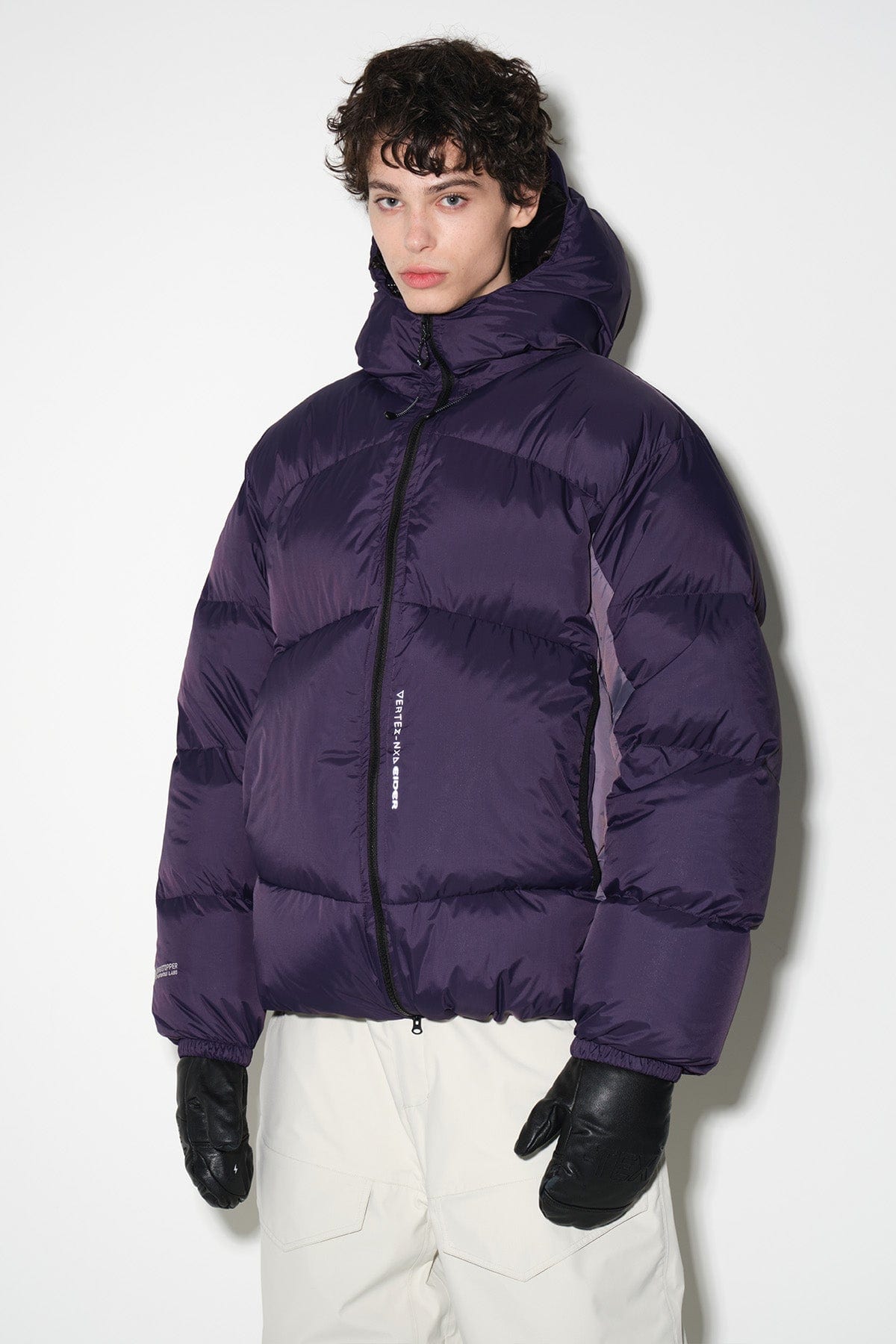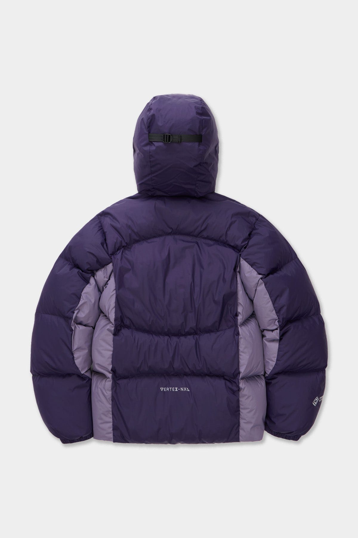 - Heavy down jacket optimized for cold elements with abundant fill volume on the hood and body