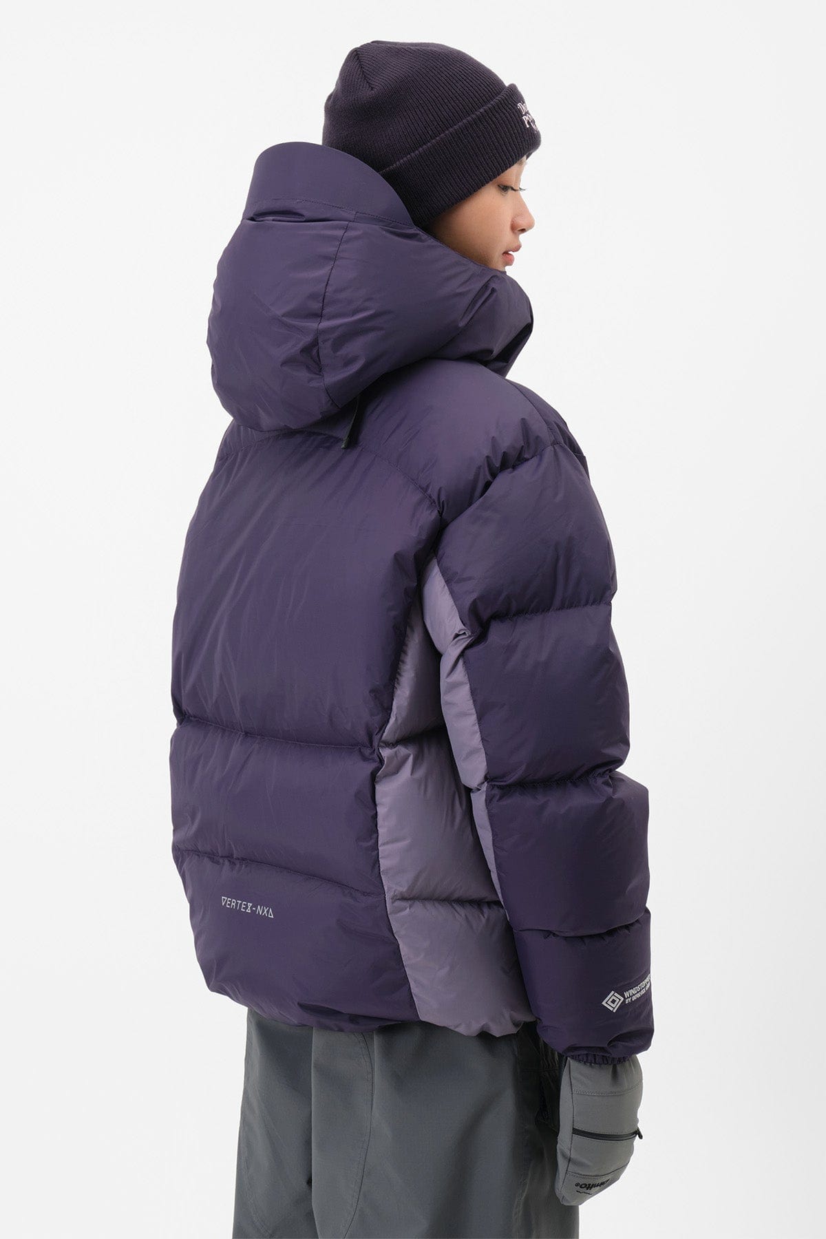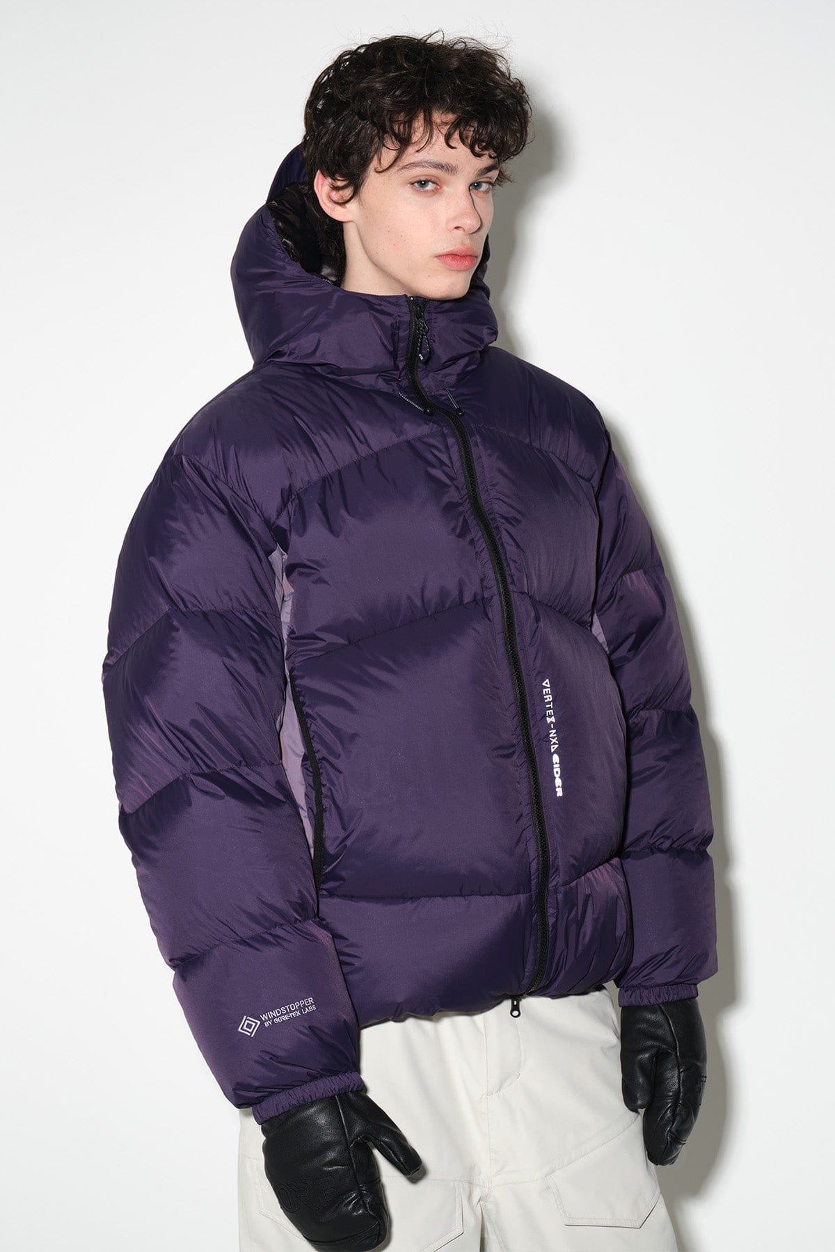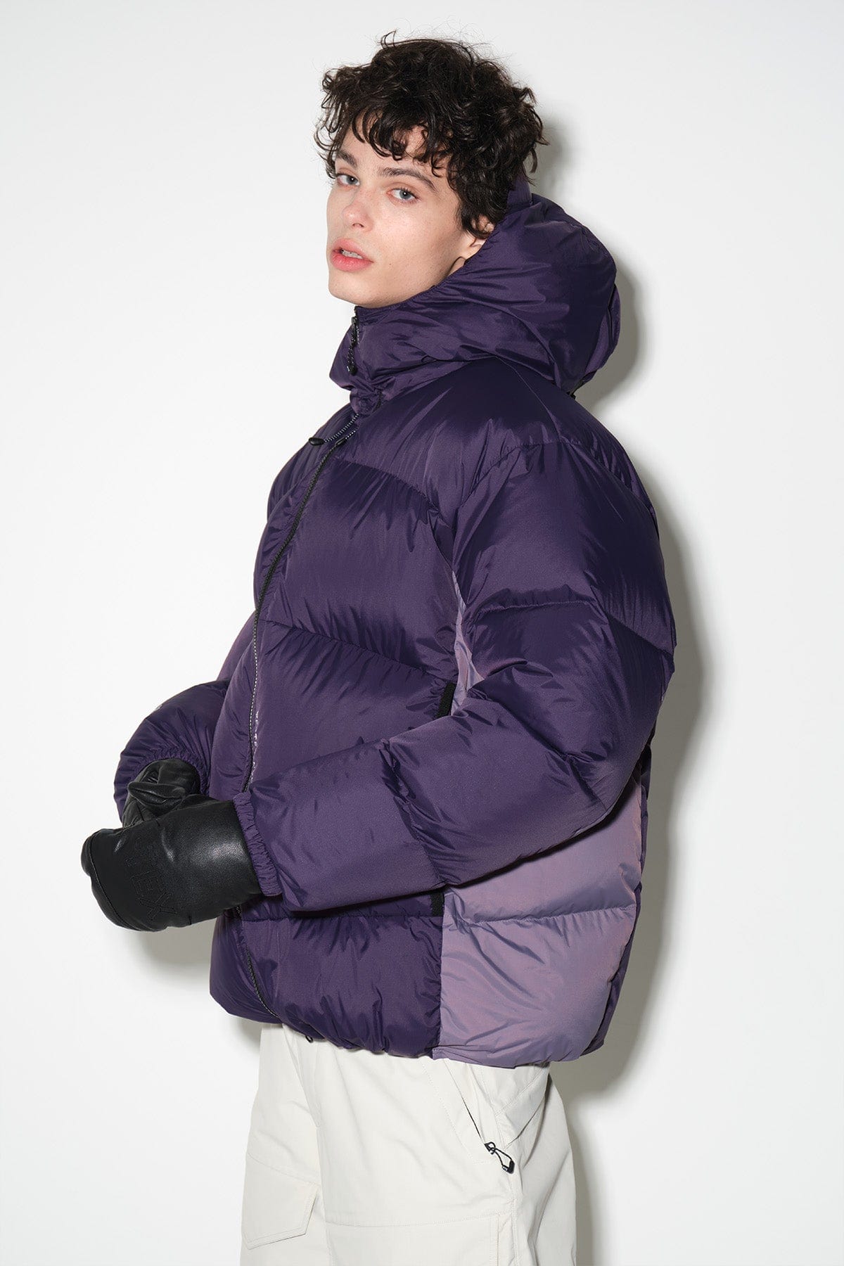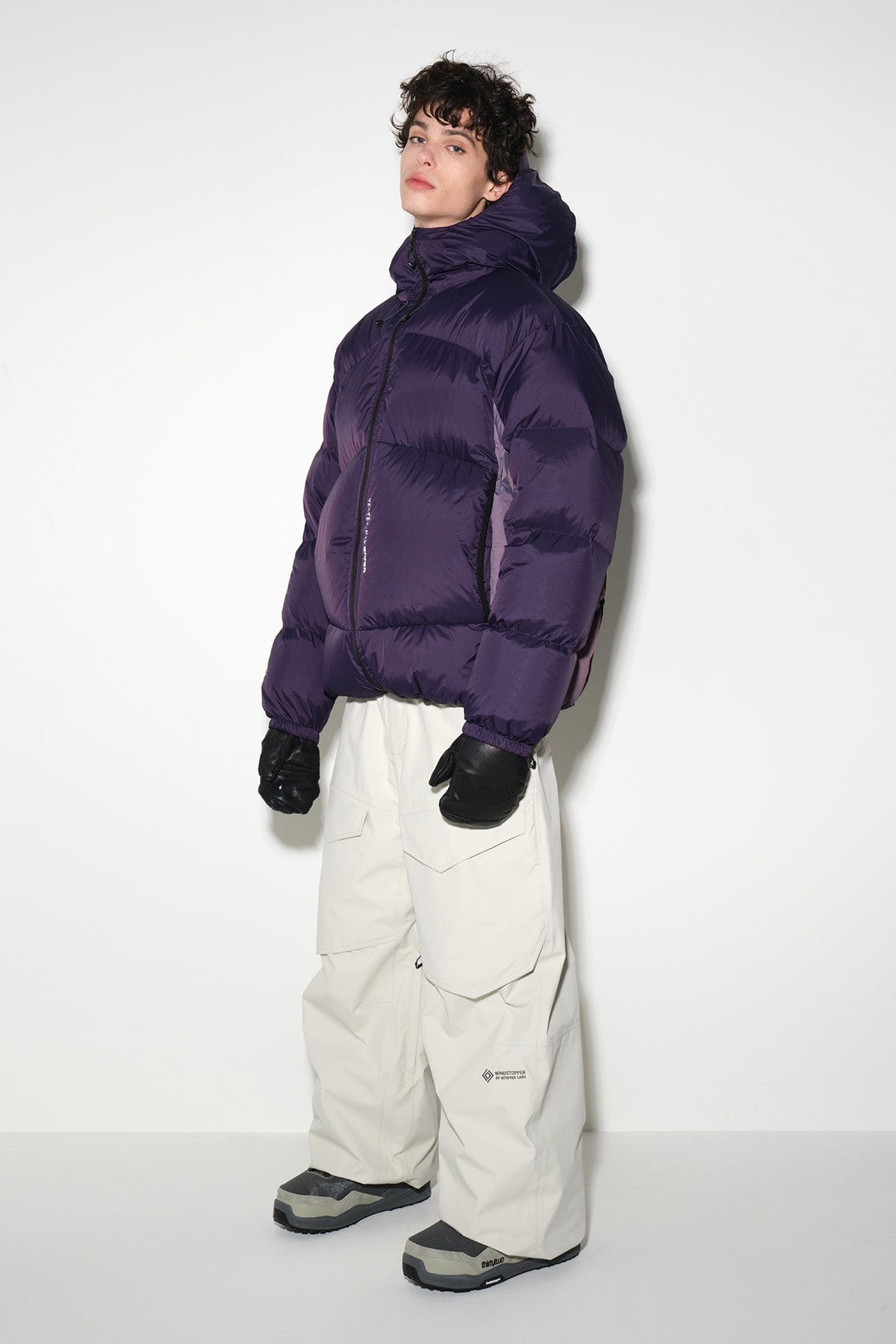 - Heavy down jacket optimized for cold elements with abundant fill volume on the hood and body