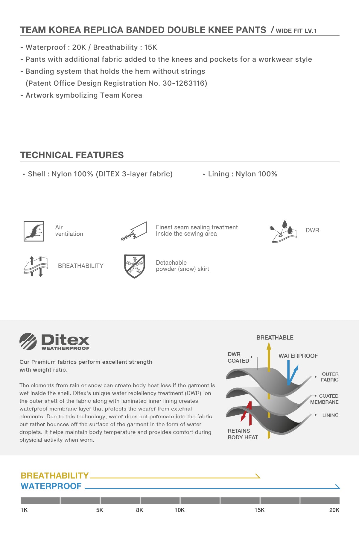 TEAM KOREA REPLICA BANDED DOUBLE KNEE PANTS (WIDE FIT LV.1) REAL TREE