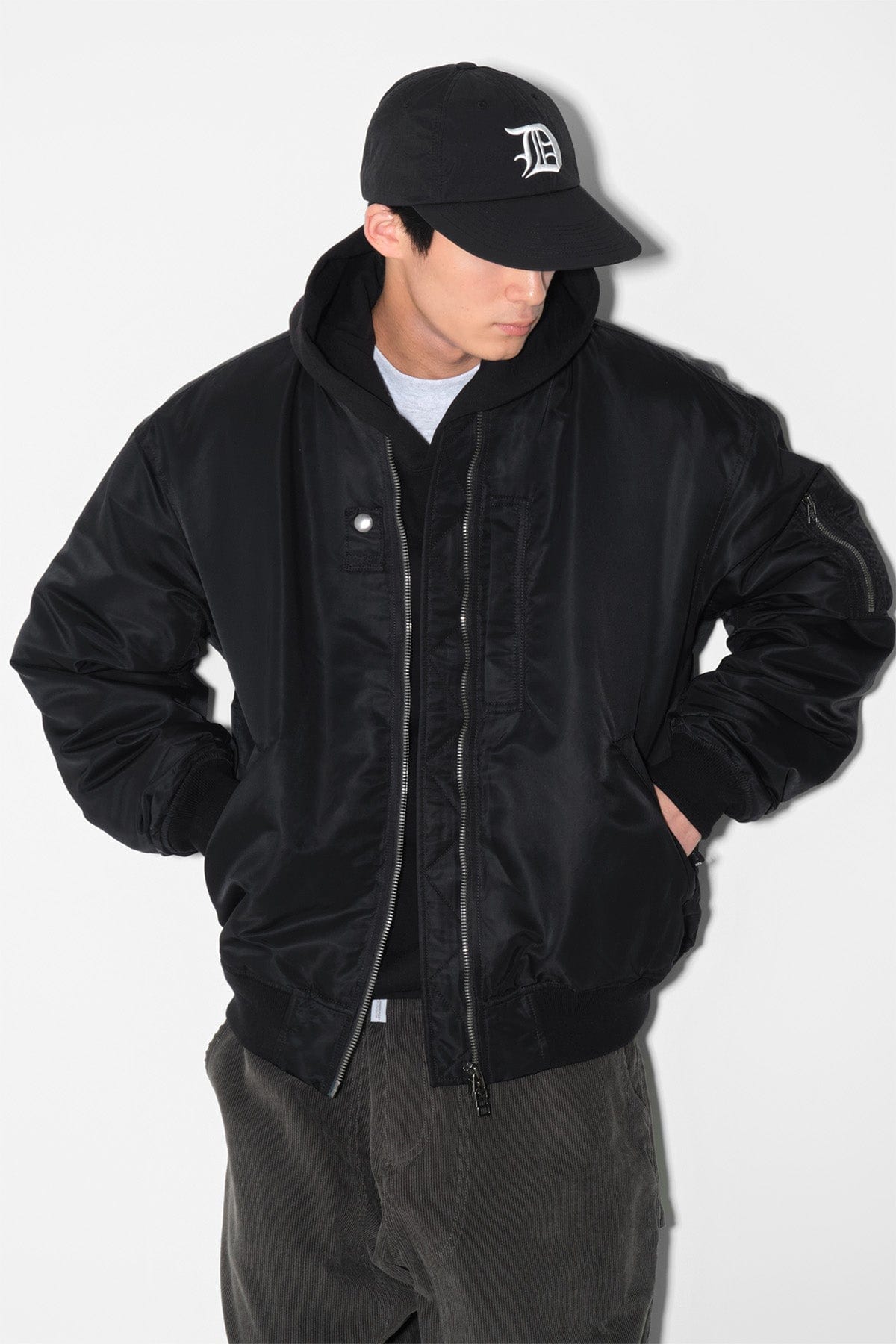 - Military style jacket that reimagines the original MA-1