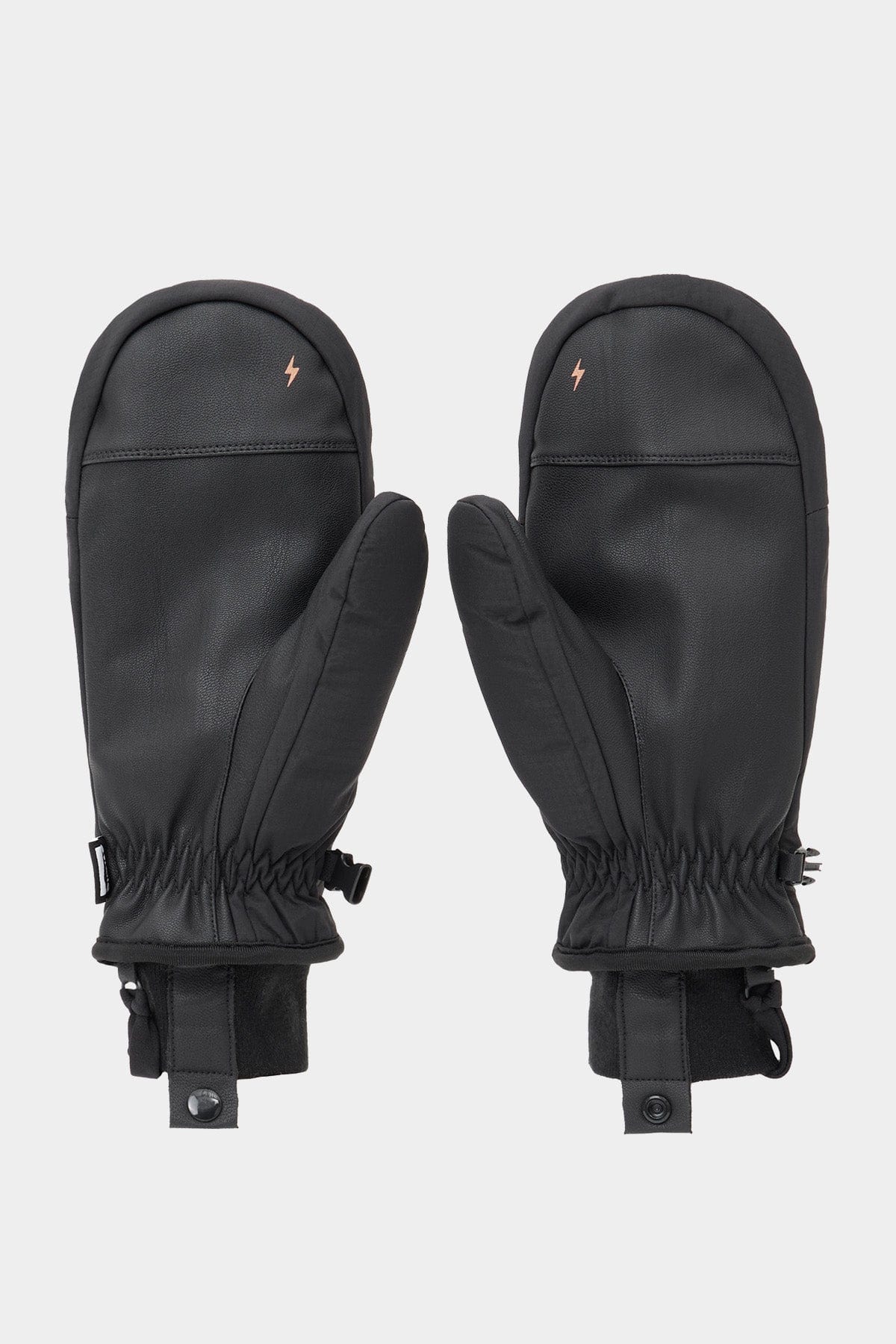 - Basic snowboard style gloves featuring reflective stitched bands on the back of the hand.