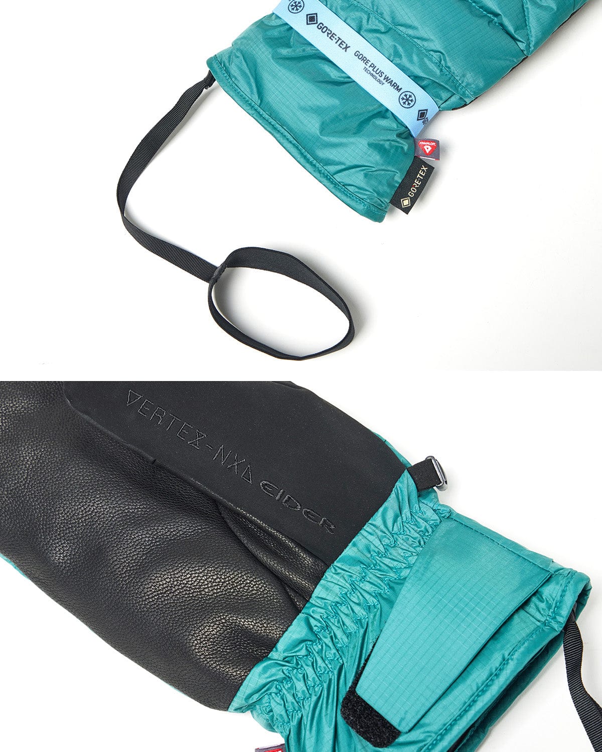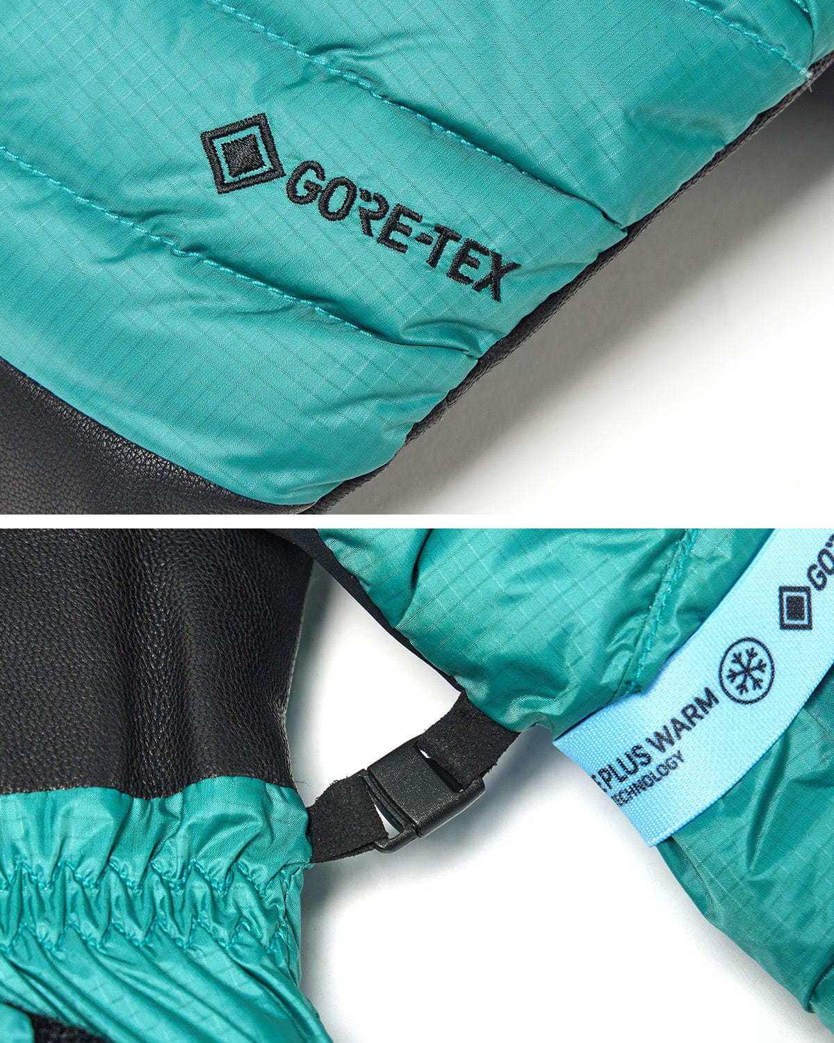In addition to the warmth, waterproof protection, and excellent moisture permeability of Gore-Tex Plus Warm insert together with the use of premium duck down and primaloftFilling keeps the wearer's hands dry and warm even in the most extreme environments. The natural goat leather finished on the entire palm and thumb area adds a soft yet stable grip and the inside of the mitten is separated for each finger, so you can maintain a cozy comfortable fit for a long wear duration. Smartphone screen touch functions are built into the thumb fingers allowing you to perform simple actions such as answering a call without taking off your gloves. In addition, a highly elastic leash cord is installed on the wrist, fundamentally preventing the risk of loss in situations where the mitten must be taken off during activities.