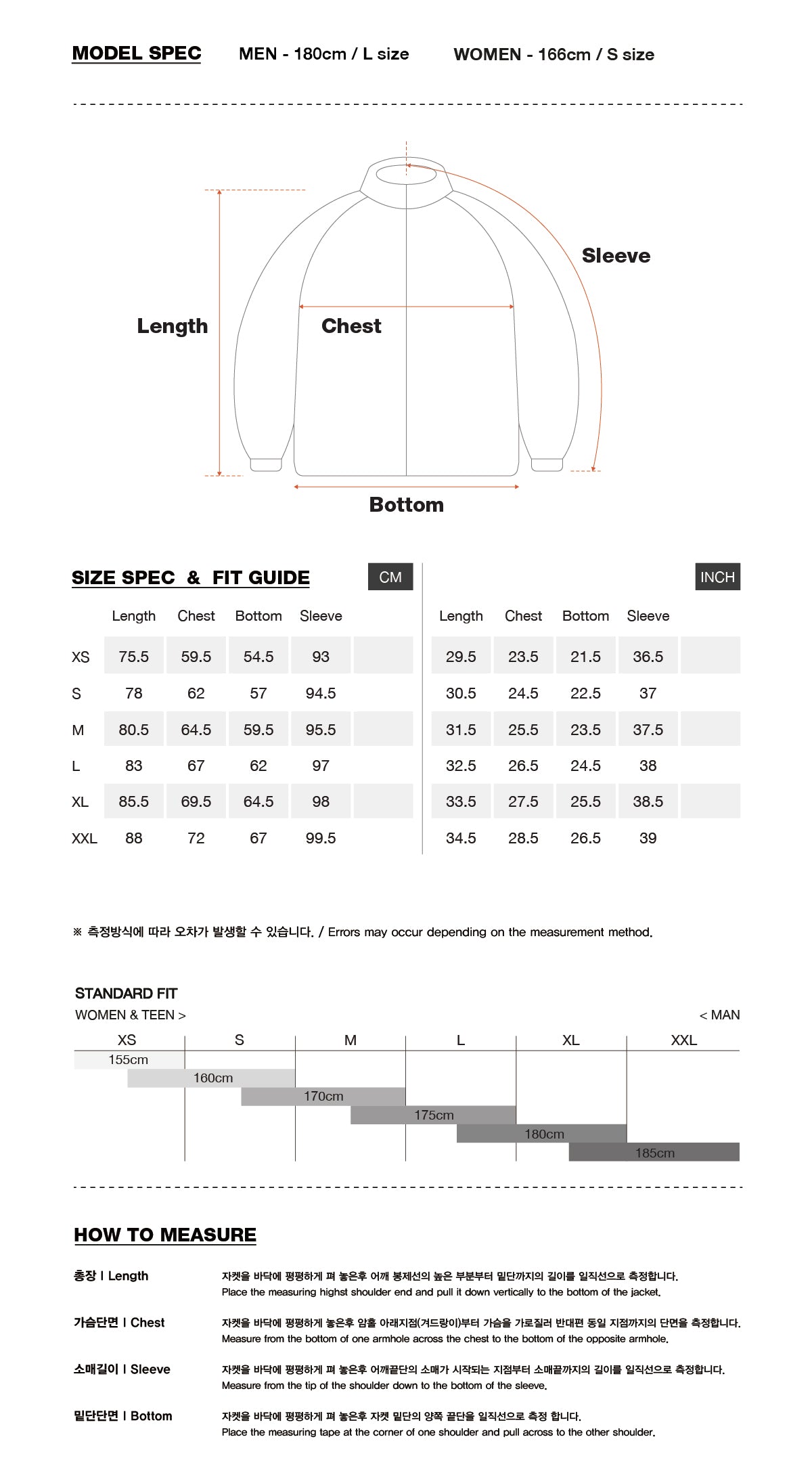 * Model spec : MEN - 180cm, L size / WOMEN - 166cm, S size