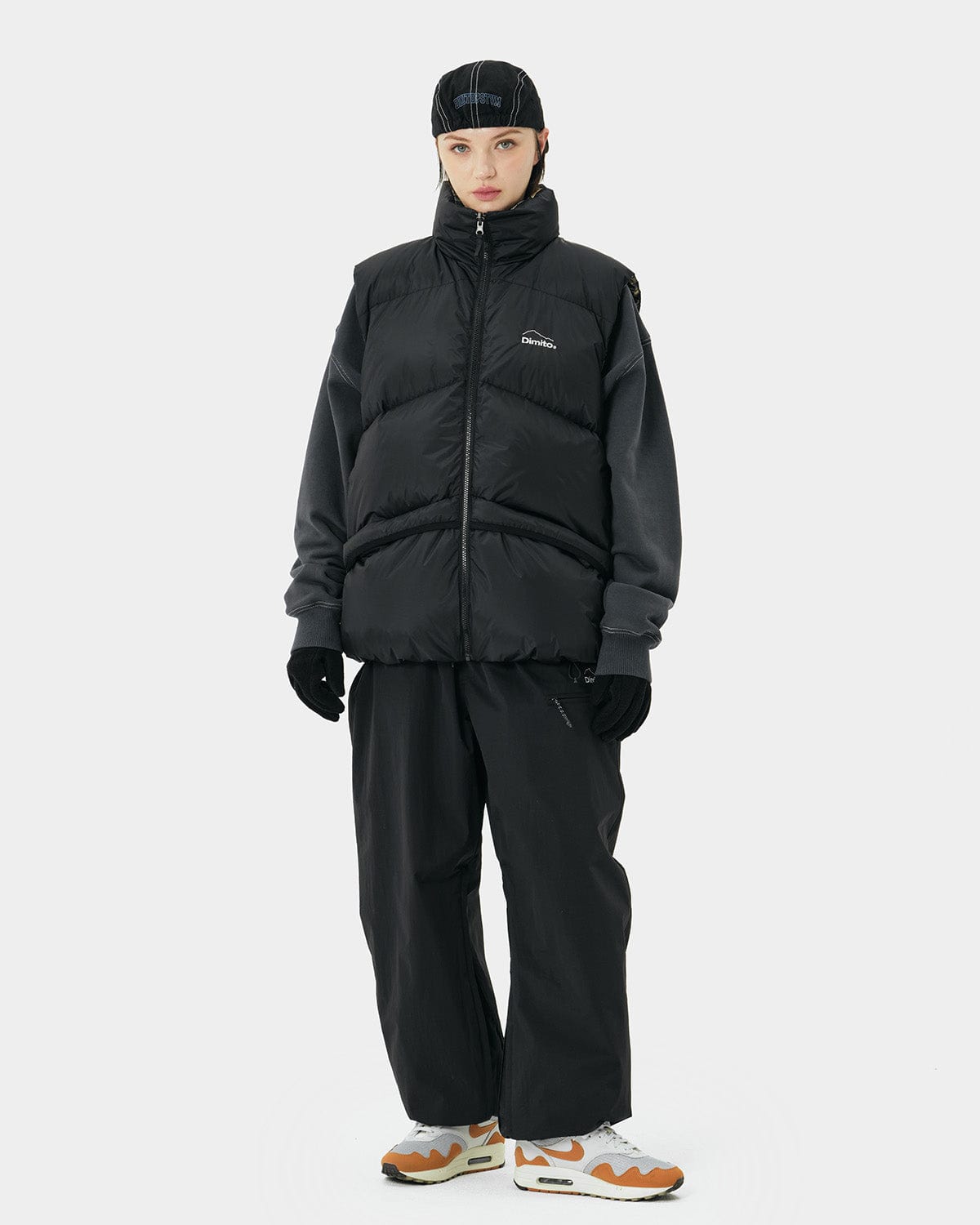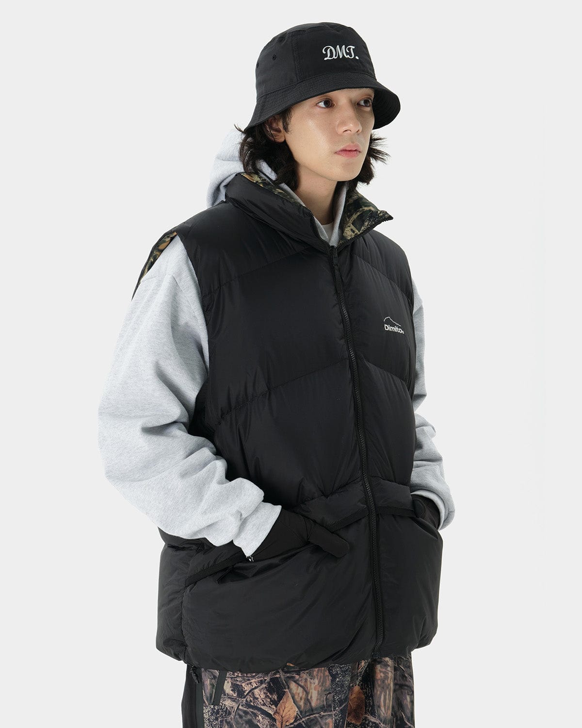 It is a down vest that can be layered with a3-layer jacket in harsh weather or layered witha sweatshirt or hoodie in between seasons.The overfit reversible design expresses a uniquepersonality and can be worn in two separate waysand color.
